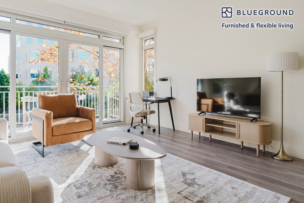 Show up and start living from day one in Mountain View with this cheery two bedroom Blueground apartment. You’ll love coming home to this thoughtfully furnished, beautifully designed, and fully equipped North Los Altos home. (ID #SFO2097) The advertised rate of $5,750/month is the lowest available price, based on a 12 month(s) stay with a move-in date of May 13, 2026. Rates vary depending on the duration of stay, season, and other parameters. For exact pricing and additional pricing components, please visit our website and enter your desired move-in and move-out dates. The rate is applicable when billed upfront; it can be higher if billed in multiple payments. Brokers are welcome to reach out. Were you looking for an unfurnished lease? Try Blueground instead and upgrade from unfurnished to furnished living: - Furnished at rates comparable to unfurnished - No setup or furniture costs - save thousands - Move-in ready - save time, just bring your suitcase Designed with you in mind Thoughtfully designed with bespoke finishes, modern furnishings, and a fully equipped kitchen, you’ll enjoy that “I’m home” feeling with this Blueground apartment. Whether you’re lounging in your lovely living room streaming the latest and greatest entertainment on the smart TV or premium wireless speaker, or getting some well-earned rest on the superior quality mattress with fully stocked linens, you’ll fall in love with everything this North Los Altos apartment has to offer. This apartment also offers in-apartment laundry. Sleeping arrangements King Bed, 70.8in/180cm Queen Bed, 63in/160cm Amenities Building amenities unique to this two bedroom apartment include an on-site: - Doorman - Dryer - Elevator - Washing machine - Parking - Pets allowed Arrival and ongoing support The entire apartment is yours to enjoy! Throughout your stay, you’ll have access to our Client Experience team through the Blueground App. You can schedule additional cleanings, submit maintenance requests, and view our neighborhood recommendations with just a few taps. We’ll share all details upon confirmation of your stay. Other things to note This Blueground apartment has flexible lease options, allowing you to book it for one month, a year, or more. Pets are welcome, though weight limits and breed restrictions apply and may incur fees. Parking is offered based on availability and is subject to a fee. We take great pride in ensuring every photo displayed is shot in our own units with our actual furnishings. That said, we regularly refresh our decor and furniture arrangement, which may differ from what’s pictured. Also note - This apartment is located in a quiet and peaceful area - There are air conditioners in each bedroom - This apartment has high ceilings [SI]
