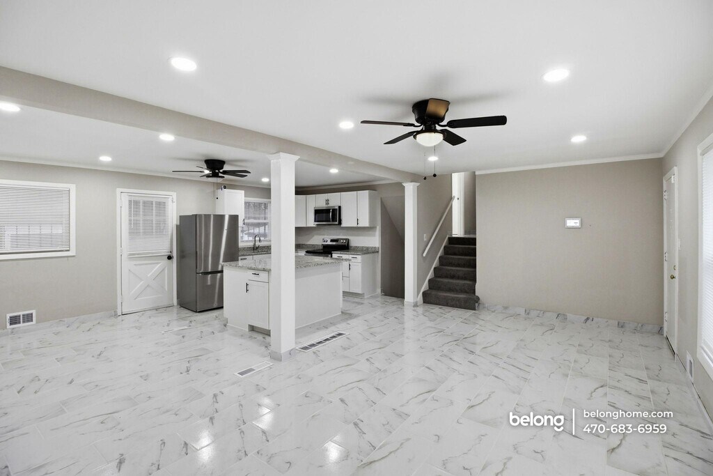 Freshly renovated and offering 5 bedrooms and 3 baths, this thoughtfully updated home in Decatur brings together generous space and refined finishes. Wide-plank tile flooring extends through the main living areas, while a large window invites in soft natural light. Recessed lighting and a ceiling fan add comfort and balance, creating a setting that feels open yet grounded. The living area flows naturally into a beautifully updated kitchen anchored by a substantial island with abundant storage. Crisp cabinetry, stainless steel appliances, a built-in microwave, and sleek surfaces provide both function and clarity in design. Whether preparing meals or gathering around the island, the layout supports connection while maintaining structure and purpose. Five well-proportioned bedrooms allow flexibility for work, rest, or creative use. Two of the bedrooms feature fireplaces that lend character and architectural interest. Three renovated baths continue the home’s cohesive aesthetic, reflecting the same attention to detail found throughout. Located in Decatur, you are minutes from I-285 for easy commuting, with nearby shopping and dining at The Gallery at South DeKalb. Grocery options such as Kroger and Walmart Supercenter are close at hand, and outdoor escapes like Midway Park provide green space for recreation. *Fireplace is for decorative use only and cannot be used without consent from Belong. *Our homes come as-is with all essentials in working order. Want upgrades? Request it through the Belong app, and our trusted pros will take care of the rest!