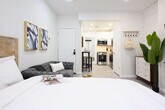 This brand new studio apartment is located on the Upper East Side of Manhattan, in the heart of the neighborhood. The location is ideal for both business and leisure travelers alike, with many restaurants, bars, shops, and other amenities nearby. The apartment is conveniently located near subway stations, with the Q train only a 2-minute walk away and the 6 train about 5 minutes away. This studio is a brand new and fully renovated apartment that offers a comfortable and luxurious living experience. It features a spacious living room lounge, a cozy bedroom with a queen-size bed and memory foam mattress, a full bathroom, a fully equipped kitchen, and an in-unit washer and dryer. The apartment boasts high-quality renovations, new furniture, ample natural light through two big windows, and complimentary clean linens and towels. Guests will also enjoy the added convenience of complimentary high-speed wireless internet and 120 HD cable channels. This apartment is an ideal choice for those seeking a memorable New York City vacation or a comfortable and convenient stay. The neighborhood offers a variety of dining and shopping options, with many highly recommended restaurants, bars, and trendy shops nearby, as well as various amenities such as supermarkets, pharmacies, coffee shops, delis, fast food, nail salons, cleaners, and bank services. The area is considered a convenient place with plenty of options. Getting around East 75th Street can be done by several means of transportation, including walking, biking, or taking public transportation such as the subway or bus. The subway has several stations located near East 75th Street, including the 72nd Street subway station on the 1, 2, and 3 lines, the 77th Street subway station on the 6 line, and the 86th Street subway station on the 4, 5, and 6 lines. Additionally, several bus lines also run through the area, making it easy to get around. Taxis, Ubers, and other ride-hailing services are also available, making East 75th Street a well-connected location for transportation. New York City's heating season is until the end of May. Beginning around mid-April, window air conditioning will be installed in the apartment. Remote check-in is possible as the building and apartment have an electronic smart lock key. No smoking and no parties are allowed. Please keep quiet and respectful for your neighbors and follow trash recycle rules. Under 15-pound dogs are allowed, with one pet permitted. [SI]
