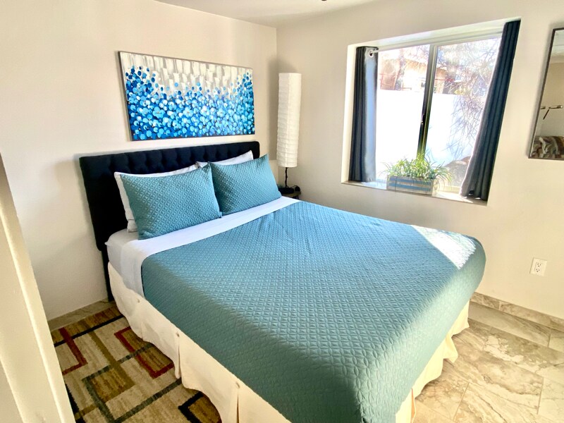 ID de propiedad: 1046337 Todas las utilidades incluidas. Nueva casa de huéspedes en un barrio histórico céntrico pero tranquilo. El hotel ofrece vista a las montañas desde la ventana de la sala de estar, una cómoda cama Queen, kitchenette con estufa de inducción, refrigerador, horno de microondas y café Tucson recién tostado. El baño completo incluye una bañera extragrande para sumergirse y está equipado con todos los artículos de cortesía. El espacio al aire libre está completamente cerrado para sus bebés peludos e incluye una parrilla al aire libre en el patio.