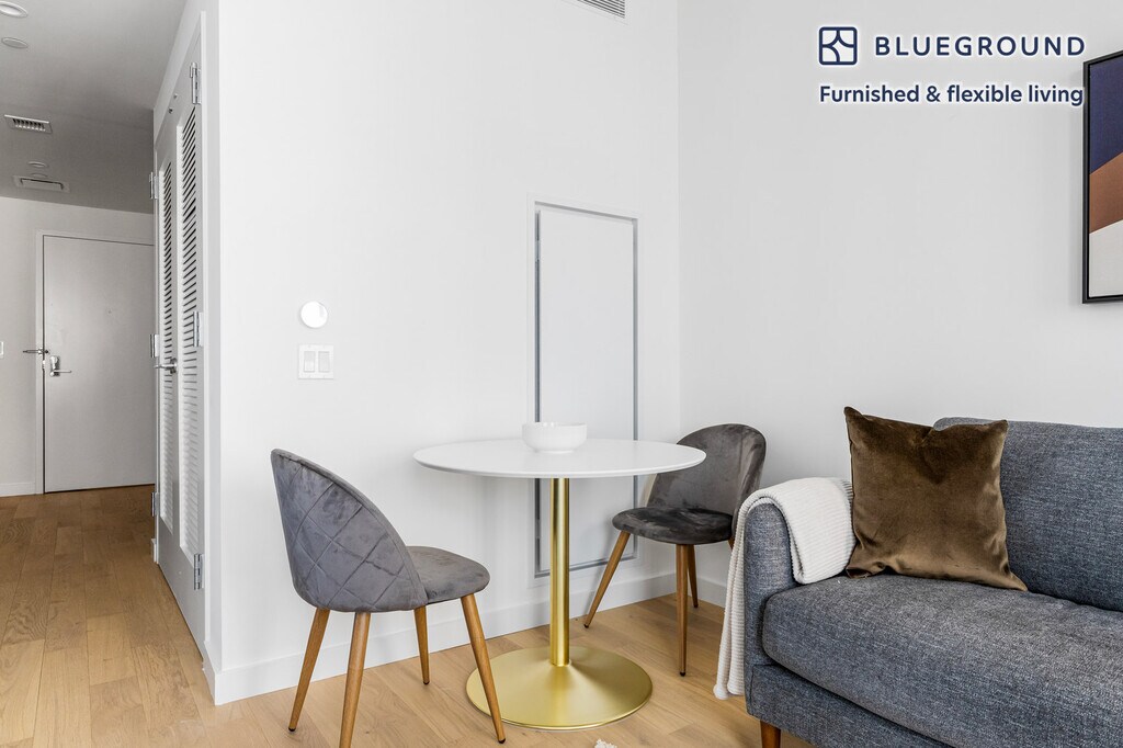 Show up and start living from day one in New York with this bright one bedroom Blueground apartment. You’ll love coming home to this thoughtfully furnished, beautifully designed, and fully equipped Chelsea home. (ID #NYC2146) The advertised rate of $8,060/month is the lowest available price, based on a 1 month(s) and 3 day(s) stay with a move-in date of December 17, 2025. If you’re looking for a 1-year stay, the rate is $11,220/month. Rates vary depending on the duration of stay, season, and other parameters. For exact pricing and additional pricing components, please visit our website and enter your desired move-in and move-out dates. The rate is applicable when billed upfront; it can be higher if billed in multiple payments. Brokers are welcome to reach out. Were you looking for an unfurnished lease? Try Blueground instead and upgrade from unfurnished to furnished living: - Furnished at rates comparable to unfurnished - No setup or furniture costs - save thousands - Move-in ready - save time, just bring your suitcase Designed with you in mind Gorgeous furniture, fully equipped kitchen, smart TV, and a premium wireless speaker are just a few of the amenities you’ll find inside this one bedroom apartment. Ideally located in New York, you’ll find a lot to love outside as well. When you’re ready to relax, you’ll be happy to discover every Blueground bedroom comes with superior quality mattresses, luxury linens, and cozy towels. We handle everything so you can simply show up and start living. This apartment also offers in-apartment laundry. Sleeping arrangements Queen Bed, 63in/160cm Amenities Building amenities unique to this one bedroom apartment include an on-site: - Doorman - Dryer - Elevator - Swimming pool - Washing machine - Lounge - Library - Playroom Arrival and ongoing support The entire apartment is yours to enjoy! Throughout your stay, you’ll have access to our Client Experience team through the Blueground App. You can schedule additional cleanings, submit maintenance requests, and view our neighborhood recommendations with just a few taps. We’ll share all details upon confirmation of your stay. Ideally Located This furnished apartment is located in Chelsea, one of the city’s trendiest neighborhoods. Considered an artistic and creative center, there are over 200 galleries to discover. Ranging from classical to experimental art, there is something for every taste. Take a stroll through the High Line park for a unique perspective and a breath of fresh air. What used to be a railroad, now provides stunning views of Manhattan’s architecture. This area is also known for its various fine dining options and hip nightlife. From Chelsea, JFK Airport is just 30 minutes away by car. Other things to note Building amenities may have an extra cost. This Blueground apartment has flexible lease options, allowing you to book it for one month, a year, or more. Brokes CYOF. We take great pride in ensuring every photo displayed is shot in our own units with our actual furnishings. That said, we regularly refresh our decor and furniture arrangement, which may differ from what’s pictured. [SI]