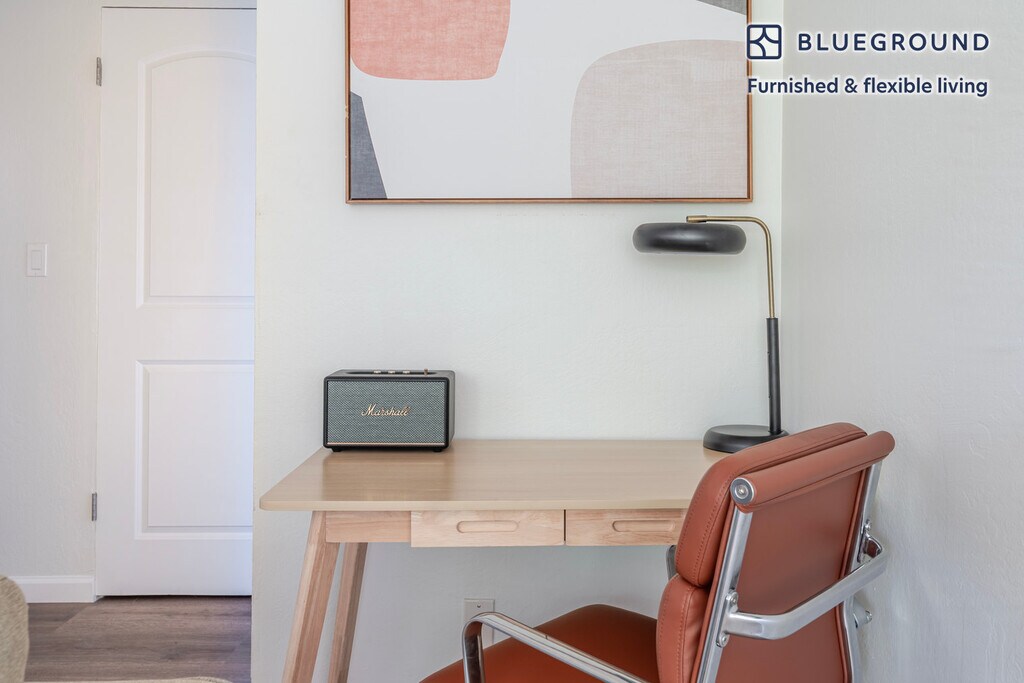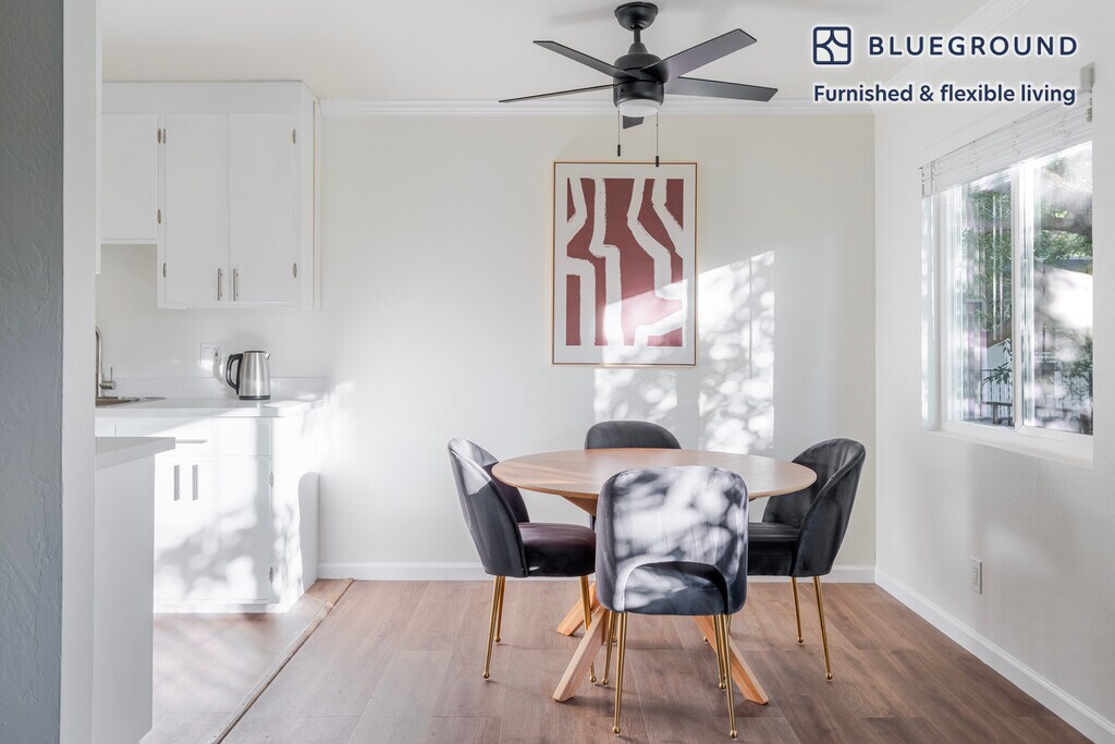 Discover the best of Mountain View, with this one bedroom apartment in Old Mountain View. It’ll be easy to simply show up and start living in this furnished apartment with its fully equipped kitchen, living room, and our dedicated, on-the-ground support. (ID #SFO2037) The advertised rate of $2,850/month is the lowest available price, based on a 1 month(s) and 2 day(s) stay with a move-in date of February 7, 2026. If you’re looking for a 1-year stay, the rate is $3,300/month. Rates vary depending on the duration of stay, season, and other parameters. For exact pricing and additional pricing components, please visit our website and enter your desired move-in and move-out dates. The rate is applicable when billed upfront; it can be higher if billed in multiple payments. Brokers are welcome to reach out. Were you looking for an unfurnished lease? Try Blueground instead and upgrade from unfurnished to furnished living: - Furnished at rates comparable to unfurnished - No setup or furniture costs - save thousands - Move-in ready - save time, just bring your suitcase Designed with you in mind Gorgeous furniture, fully equipped kitchen, smart TV, and a premium wireless speaker are just a few of the amenities you’ll find inside this one bedroom apartment. Ideally located in Mountain View, you’ll find a lot to love outside as well. When you’re ready to relax, you’ll be happy to discover every Blueground bedroom comes with superior quality mattresses, luxury linens, and cozy towels. We handle everything so you can simply show up and start living. Sleeping arrangements King Bed, 70.8in/180cm Amenities Building amenities unique to this one bedroom apartment include an on-site: - Dryer in building - Swimming pool - Washing machine in building - Parking - Pets allowed Arrival and ongoing support The entire apartment is yours to enjoy! Throughout your stay, you’ll have access to our Client Experience team through the Blueground App. You can schedule additional cleanings, submit maintenance requests, and view our neighborhood recommendations with just a few taps. We’ll share all details upon confirmation of your stay. Other things to note Building amenities may have an extra cost. This Blueground apartment has flexible lease options, allowing you to book it for one month, a year, or more. Pets are welcome, though weight limits and breed restrictions apply and may incur fees. Parking is offered based on availability and is subject to a fee. Please keep in mind that this is a walk up building. We take great pride in ensuring every photo displayed is shot in our own units with our actual furnishings. That said, we regularly refresh our decor and furniture arrangement, which may differ from what’s pictured. [SI]