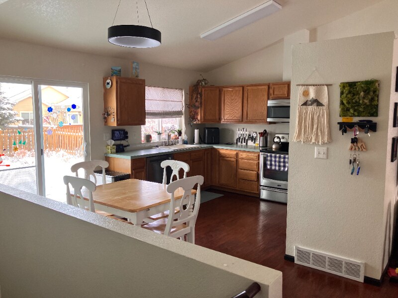 Property Id: 2231605 Pleasant layout inside with great natural light in the bedroom, living room and kitchen spaces. 1088 finished square feet upstairs with the same amount in an unfinished basement! We used it for workouts, playroom storage and a guest room at times! Updated appliances, on-demand water heater (for those long warm showers!), whole house humidifier (to combat the dry air), and neutral painted walls for your own decorative touch to fit right in. Freshly painted exterior make it a lovely sight to come home to. There are 3 established garden spaces with native or "water-wise" plants for you to enjoy during your stay. Something is blooming all summer long! The Loveland Loop Trail is 1/4 mile walk and connects for a 21 mile loop around Loveland through many open spaces and natural areas. You can also connect into the Long View Trail up into the Fort Collins bike trail system. Coyote Ridge and Prairie Ridge hiking and mountain biking trails are only a few miles down the road. These connect to miles of dirt trails for hiking, running, or mountain biking. It is a great combination of urban and outdoor living!
