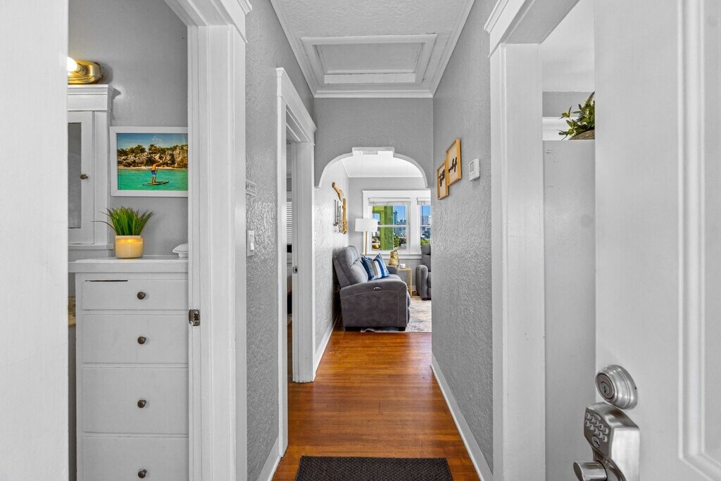 This one-bedroom home is located in Bankers Hill, close to Downtown, Little Italy, and Balboa Park. The unit offers views of the bay, Downtown skyline, passing ships, aircraft, and SeaWorld fireworks. The primary bedroom has a king bed with hotel-quality linens. Amenities: * Private parking space * Smart TV with Hulu, ESPN+, and Disney+ * Private balcony with bistro seating and ocean views * Fully stocked kitchen * Central heating and air conditioning Sleeping Arrangement: * King-size bed with 100% cotton linens, goose down pillows and duvet * Walk-in closet and chest of drawers Guest Access: Guests have access to the entire unit shown in the photos. Entry details and lockbox code will be sent by email on the morning of check-in. Please note: there is another home on the front of the parcel rented separately. The driveway is shared. Important Notes: * Stairs are required to access the unit * The home is older * The property is near the airport and highway; noise may be heard, especially outdoors Parking: There is one assigned parking spot in the driveway available for your unit. When you enter the driveway, your spot will be on the right and is marked with yellow paint. The other two tandem spots belong to the unit next door, so please do not park there. Check-In / Check-Out: * Check-in: 4:00 PM or later (unless approved) * Check-out: 11:00 AM * Late check-out fee: $100 per 15 minutes after 11:00 AM A signed check-in form is required before arrival and includes ID upload, selfie, and agreement to house rules. Access codes are not issued without completion. Reservations may be canceled within 24 hours of booking if house rules are not accepted. Guest Requirements: * Primary renter must be at least 25 years old * Booking profile must include photo, phone number, and email Noise & Neighborhood: * Quiet hours: 10:00 PM 8:00 AM * No parties, events, or gatherings * Zero tolerance for noise complaints Visitors: * Visitors must be approved in advance * Unauthorized visitors: $250 per person Pets: * No pets allowed * Unauthorized pets: $250 per pet plus cleaning costs * Service animals may have stayed previously; allergen-free conditions are not guaranteed Smoking: * No smoking anywhere on the property * Smoking remediation fee up to $2,000 Damage & Property Use: * All damage must be reported before check-out * Guests are responsible for damage, missing items, or excessive cleaning * No removal of furnishings or household items * No subletting Security: * Exterior public areas are monitored by video surveillance