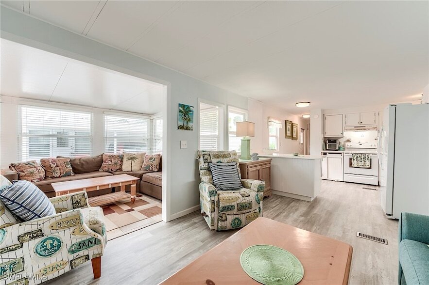 Discover the charm of coastal living in this inviting mobile home with Florida Room on owned land within a sought-after 55+ Gulf-access community a true boater s paradise! Enjoy quick boat access to the Gulf from the private residents-only ramp and take advantage of the community s full suite of amenities. This furnished home features stylish d cor, tile in the bathrooms and sunroom, and laminate flooring throughout the main living areas. The kitchen offers a modern look with faux wood tile, while the comfortable primary bedroom includes a walk-in closet and en-suite bath with walk-in shower. Relax in the bright sunroom and enjoy breathtaking sunsets each evening. Close to Coconut Point Mall, Miromar Outlets, Bonita Beach, Lovers Key, and Fort Myers Beach, this home offers both convenience and lifestyle. The community includes a clubhouse, heated pool and spa, tennis and pickleball courts, bocce ball, fishing pier, boat ramp, and more all with very low community fees. Whether you re looking for a seasonal escape or an affordable full-time residence, this cozy Gulf-access gem offers the perfect Southwest Florida lifestyle.