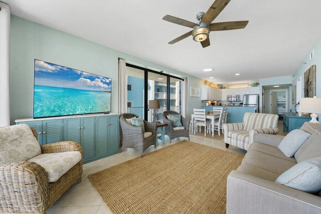 Escape to Shoalwater 406, a beautifully renovated 3-bedroom, 3-bathroom condo in the heart of Orange Beach. This stunning corner-unit retreat offers breathtaking Gulf views and a spacious, private balcony where you can soak in the sights and sounds of the ocean. Inside, the open-concept living area is designed for both comfort and style, featuring comfortable seating, a large flat-screen TV, and seamless balcony access—perfect for morning coffee with a view or sunset cocktails. As a corner unit, this condo offers enhanced privacy and ample space to relax while enjoying the stunning ocean view, complete with a rocking chair, lounger, and additional seating. The master suite boasts a gorgeous ocean view, and with three en-suite bathrooms, you will enjoy privacy and convenience. The condo comfortably sleeps up to eight guests. The fully equipped kitchen makes dining in a breeze, complete with modern appliances, cookware, and a dining table that seats six. As a guest, you’ll have access to top-tier resort amenities, including outdoor and indoor pools, a hot tub and sauna, a fitness center, and tennis courts. Parking includes a maximum of 2 passes per reservation and the parking fee is included in the total amount. Shoalwater 406 is just minutes from Orange Beach’s best restaurants, shopping, and attractions. Whether you’re in the mood for water sports, fresh seafood, or a relaxing stroll along the shore, everything is within easy reach. For your safety and protection, some properties have cameras installed outside. Surveillance cameras are not inside any of our properties. The minimum age requirement for check-in is 25 years old from March 1st to May 1st. For same-day late check-ins, you need to get the host's approval before booking. The home has a maximum occupancy of guests. Renters who exceed the occupancy limit are subject to eviction. No smoking in the unit or on the balcony. Any violation of the smoking policy will incur a $250 fine plus cleaning costs necessary to remove smoke odors. Quiet hours are observed from 10 pm to 8 am. Violators will be charged a $200 fine. The condominium association has a strict no pets policy. This applies to emotional support animals as they are not covered by ADA. Only ADA-compliant service dogs are allowed according to Federal Law. We are not responsible for any accidents, injuries, or stolen or damaged items that occur while on the premises, its facilities, or parking lots. Traveler must be at least 22 years of age or older to make a reservation. No parties or events are allowed. Violators will be charged a $500 fine. [SI]
