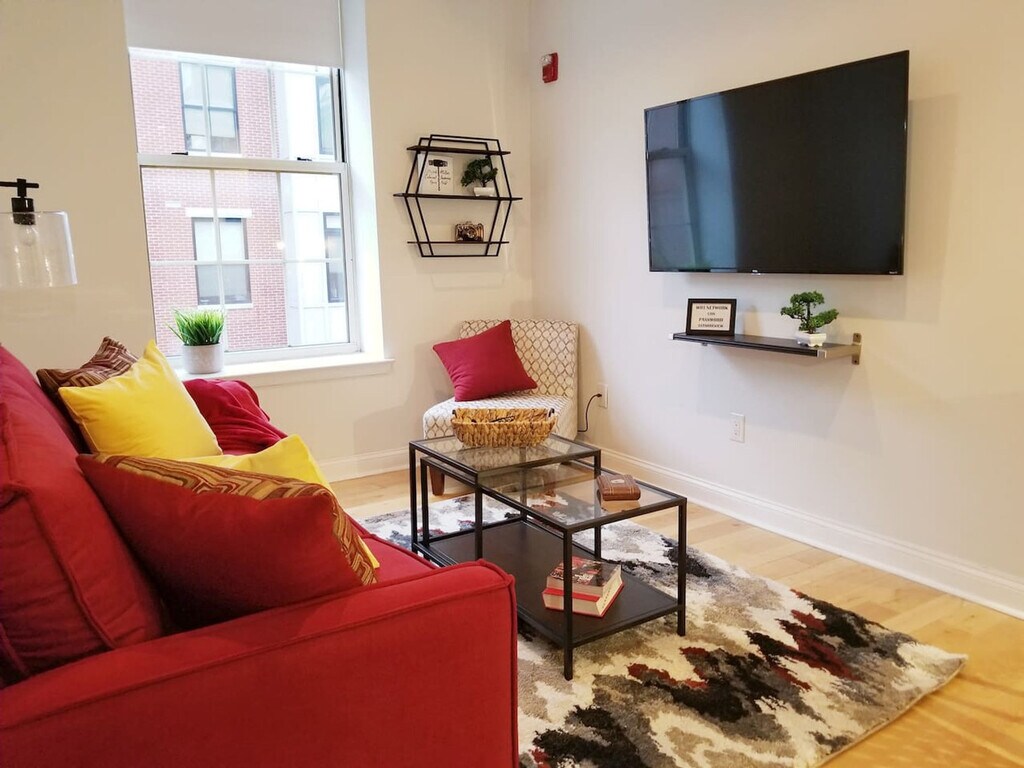 Feel at home in this contemporary and luxurious 1-bedroom apartment with an urban feel, located in the heart of Olde City. Situated on the third floor of a complex with elevator access, this apartment is perfect for business travelers, healthcare professionals, families visiting Old City, or sports lovers visiting the metro and surrounding areas. This apartment features fast Wi-Fi, two smart TVs with Roku, a full kitchen with a Keurig coffee maker, central AC, linens, towels, toiletries, and an in-apartment washer/dryer. The kitchen is fully equipped with a refrigerator, dishwasher, stove/oven, and microwave. A Pack N Play and high chair are available. Parking is available in a lot next door for $15 to $45 for 24 hours. Free parking is available on Sundays a few blocks away, and metered parking is available on other days between 8 am and 8 pm. The Bourse Parking Garage and Autopark at Old City are also nearby. With a walk score of 99, this apartment is within walking distance of Independence Hall, the Liberty Bell, and Elfreth's Alley. It is also conveniently located near the Convention Center, CHOP, Jefferson/Penn Hospital, and UPENN. Amada, a local favorite Spanish Cuisine tapas bar, is a half-mile walk away. Cuba Libre Cuban Cuisine and late-night salsa dancing are a 10-minute walk away. Zahav, Goldie, and other restaurants are also within walking distance. The Market-Frankford subway line is a few steps away, and Philadelphia International Airport is 18 minutes away. Pets are allowed on a case-by-case basis with a fee of $50 per pet for stays of 1 to 6 nights, $100 per pet for stays of 7 to 21 nights, and $175 per pet for stays of 21+ nights or monthly stays, up to a maximum of $175 per pet per month. Guests are required to remove garbage from the home during their stay and will pay any garbage or automotive-related city fines imposed by the apartment complex. For long-term stays of 30 days or more, extra cleanings are required once per month. Smoking, parties, and events are not allowed. Unauthorized extra guests or pets will be charged $50 per night per guest or pet. Unauthorized late check-out will be charged $75 for every 30 minutes. Lost keys, key fobs, or parking access swipe cards will result in a $300 charge, and lost parking pass tags will result in a $200 charge. Failure to send a photo of any associated parking passes, keys, key fobs, garage remotes, or swipe cards will result in a $100 charge. Smoking of any kind will result in a $1000 charge and a cleaning fee may be assessed if necessary, including a $500 ozone treatment. Check-in is any time after 4 PM, and check-out is by 10 AM. Professional workspace is available.