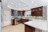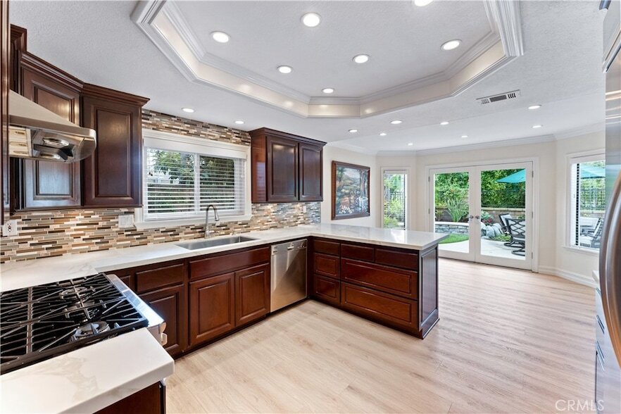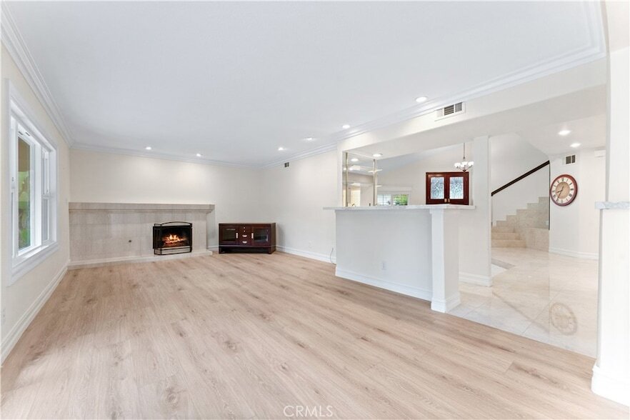 This beautifully remodeled 5-bedroom, 3.5-bathroom home is tucked away in a peaceful cul-de-sac. It features a 3-car garage with epoxy floors and overhead storage, a large primary suite with a fireplace, walk-in closet, and a luxurious en suite bathroom with a soaking tub and walk-in shower. A hot water recirculation system ensures instant hot water throughout the home for added convenience. Upgrades include elegant marble and luxury vinyl plank flooring, dual-pane windows, and crown molding throughout. The landscaped backyard boasts a private spa, perfect for relaxing. Conveniently located near shopping, dining, and top-rated schools, this home is ready for you to move in.