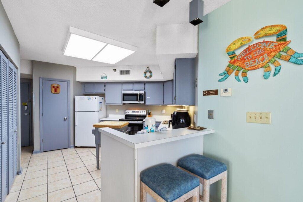Welcome to this stunning beachfront 3-bedroom condo in Orange Beach, ideal for up to 10 guests. With its spacious design and inviting atmosphere, it’s the perfect spot for a family vacation, a getaway with friends, or a romantic retreat. The condo offers a bright and airy living room with amazing views of the water, a fully equipped kitchen for preparing home-cooked meals, and a private balcony for breathtaking beach views. The bright and airy living room is perfect for gathering, offering amazing views of the water right from your comfy living room. The fully equipped kitchen has everything you need to prepare home-cooked meals, while the adjacent dining area provides a cozy space to enjoy them together. Step onto the private balcony and take in breathtaking beach views—your perfect spot for morning coffee or sunset relaxation. The condo building offers fantastic amenities to elevate your stay. Enjoy year-round swimming with both indoor and outdoor pools, fire up the grill at the BBQ area for a delightful outdoor meal, or unwind in the hot tub after a day of beach adventures. The parking space accommodates a maximum of 2 cars, and the parking fee is included in the total amount. With its prime location, modern comforts, and incredible views, this condo is your ultimate beachside escape in Orange Beach. Explore local attractions such as Dinosaurs In The Woods, Orange Beach History Museum, Gulf State Park Nature Center, Bamahenge, Orange Beach Waterfront Park, The Wharf, Adventure Island, Orange Beach Welcome Center, and Romar Beach. For March 1st to May 1st, the minimum age requirement for check-in is 25 years old. The living room features one sofa bed along with two twin sleeper chairs. For same-day late check-ins, you need to get the host's approval before booking. The home has a maximum occupancy of guests. Renters who exceed the occupancy limit are subject to eviction. No smoking in the unit or on the balcony; any violation of the smoking policy will incur a $250 fine plus cleaning costs necessary to remove smoke odors. Quiet hours are observed from 10 pm to 8 am, and violators will be charged a $200 fine. The traveler must be at least 22 years of age to make a reservation. A state identification card or driver's license copy will be requested upon booking. The condominium association has a strict no-pets policy, which applies to emotional support animals as they are not covered by ADA. Only ADA-compliant service dogs are allowed according to Federal Law. No parties or events are allowed, and violators will be charged a $500 fine. A laptop computer is not included. [SI]