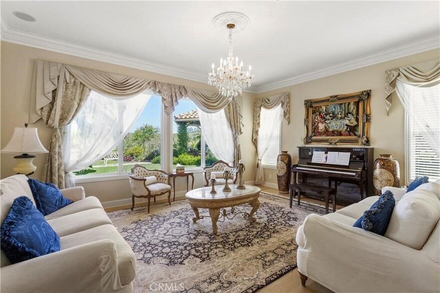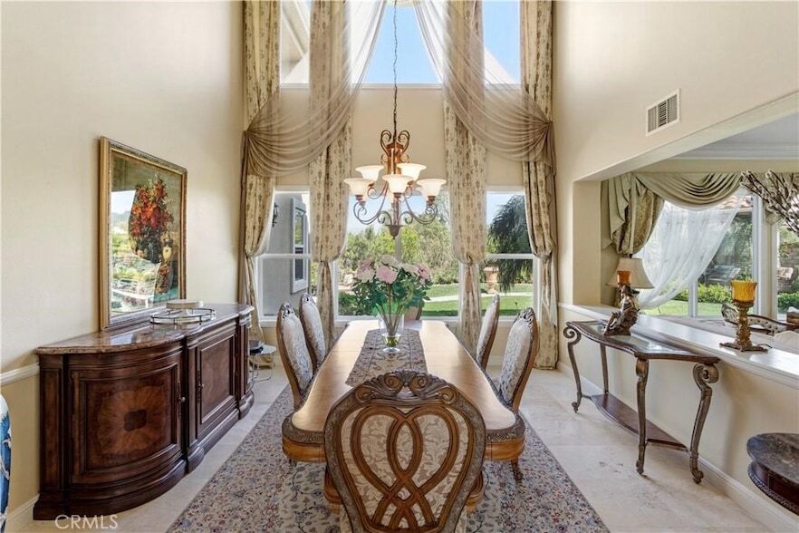 Elegant Mediterranean Luxury View Home in Pinnacle CommunityExperience refined living in this stunning Mediterranean luxury residence located in the highly desirable Pinnacle community. This exceptional home features breathtaking views, beautiful professional landscaping, and an impressive custom paver driveway leading to grand double entry doors with beveled glass.Inside, dramatic double wrought-iron staircases create a striking first impression. The spacious floor plan offers 5 bedrooms plus an office/library with French doors, perfect for working from home.The gourmet kitchen is designed for both everyday living and entertaining, featuring stainless steel appliances, a 6-burner stove with grill and warming drawer, upgraded cabinetry, granite countertops, a large center island, and a butler s pantry.The elegant family room features a custom fireplace, while expansive living spaces showcase custom lighting, travertine and hardwood flooring throughout.The luxurious primary suite offers a private balcony with stunning views of sunsets and city lights, along with a cozy fireplace and a convenient morning kitchen. The completely remodeled spa-inspired primary bathroom features a Jacuzzi tub, oversized shower enclosure, and dual vanities.Each bedroom includes its own attached bathroom, and a spacious downstairs bedroom provides added flexibility for guests or multi-generational living.The beautifully landscaped backyard creates a private garden retreat with numerous mature fruit trees, including persimmon, plum, peach, pear, pomegranate, apple, avocado, grapevines, fig, and many more varieties perfect for enjoying fresh homegrown fruit and outdoor living.Additional highlights include a whole-house water softener system, a reverse osmosis drinking water filtration system, a 4-car garage, and elegant architectural details throughout.A rare opportunity to own a spectacular view home that combines luxury, comfort, and timeless Mediterranean design.also property for sale too.