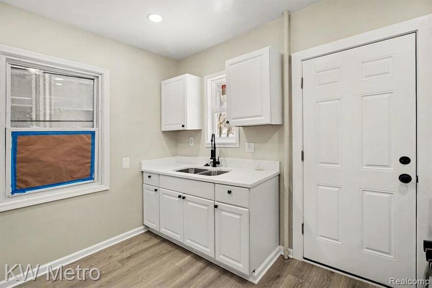 Professionally renovated 4-bedroom, 2-bath bungalow in Detroit s desirable Islandview/West Village area. Built in 1913 with updates top-to-bottom, this home blends historic character with modern finishes. Main floor features a bedroom, den, renovated full bath, first-floor laundry, and bright living and dining areas with decorative stained-glass accent. Upstairs offers three additional bedrooms and a second full bath with deep closets for added storage. Large covered front porch, fenced backyard, newer roof, and updated interior and exterior doors.