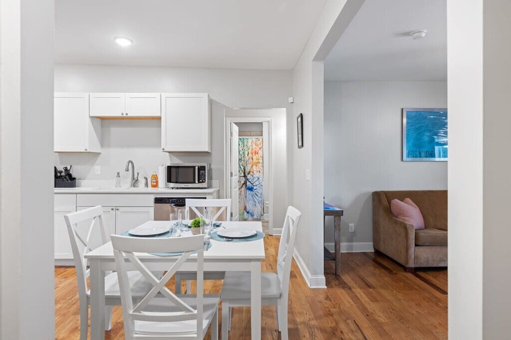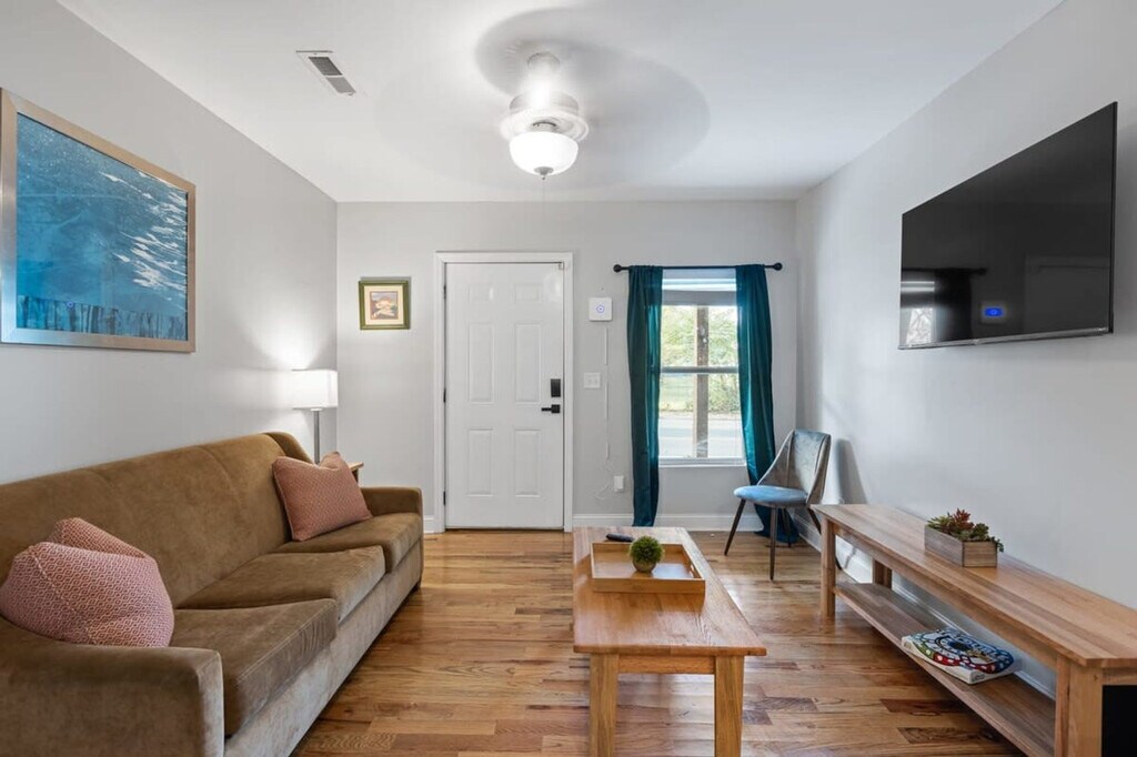 Welcome to the McCallie Dugout, a trendy crashpad minutes from downtown where you can feel at home! This fully remodeled home offers an awesome front porch with a view of the gates of McCallie School. Inside, you'll find a cozy living room with a large smart TV and a couch with a queen pullout. The table with seating for four sits just off the fully equipped kitchen that is ready for all your cooking needs. The master bedroom features a king-size bed, desk, and en-suite bathroom. The second bedroom has two full beds, and the third and fourth bedrooms both have a queen bed. There is a shared full bathroom in the hallway. The backyard is partially fenced and features a grill and picnic table. Parking at our home is limited to two vehicles, one in front of the other, as the driveway is shared with neighbors. This home is right next to McCallie School, 5 minutes to Chattanooga Zoo, 10 minutes to the Tennessee Aquarium and 15 minutes to Ruby Falls. Uber and Lyft are readily available. Quiet hours are between 10 PM and 7 AM. If our cleaning crew reports any signs of smoking cigarettes, vapes, e-cigs, pipes, etc. (smell, ash, etc.) in or around the home, an automatic $500 damage charge will be incurred. The same charge applies if cigarette butts are found outside of the home. If marijuana is smoked in or around the home a $500 fee will be charged, and details about the reservation may be turned over to the appropriate authorities. Parties are prohibited at the home. If you violate quiet hours and disturb the neighbors, we will cancel your reservation; you will be required to leave the property immediately and you will not be eligible for any refunds. You will be responsible for any damage to the home or its furnishings during your stay. There is a $100 charge for third-party trash removal if an excessive amount of trash is left at the property. Pets are permitted at this home, and you will be responsible for cleaning up all evidence of your pet at the property, including fur inside the home and waste from the yard. Includes a desk. Registration Number: STVR-21-184 [SI]