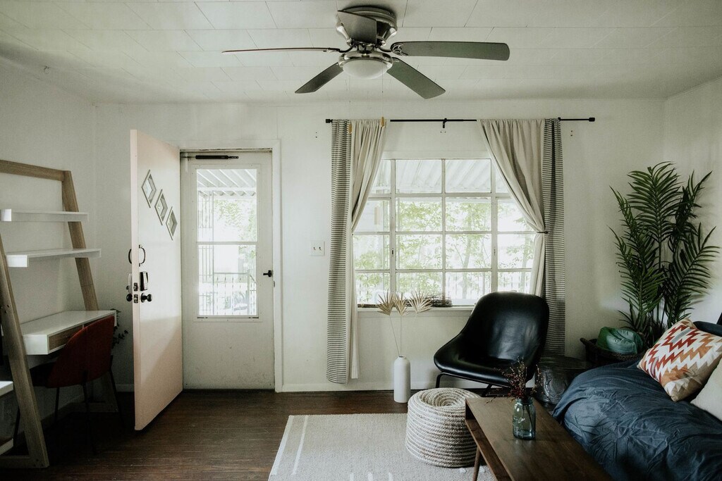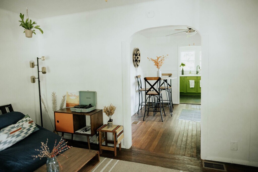Escape to this stylish Bloomington bungalow, tucked in a quiet neighborhood just minutes from the B-Line Trail, Switchyard Park, Indiana University, and downtown. Ideal for small families, friend groups, or anyone looking for a cozy, convenient stay in the heart of the city. Step into a stylish blend of mid-century charm and modern comfort at this inviting Bloomington retreat. Perfect for up to 3 guests, this 2-bedroom home features a cozy living area, a sleek, fully equipped kitchen, and a tranquil backyard with a fire pit and outdoor dining. With plush bedding, Smart TVs, and thoughtful amenities, this home offers a peaceful haven just minutes from top attractions, dining, and Indiana University. This property is pet-friendly, but there is a pet fee in place. If you have any questions, feel free to reach out. This home is located in a small and quiet residential neighborhood. The large mature trees provide lots of shade and privacy. The neighborhood is safe and family friendly, being located close to lots of parks. Nearby attractions include Switchyard Park, a beautifully designed park with trails, green spaces, and recreation areas, WonderLab Museum, a hands-on science museum perfect for curious minds of all ages, and the scenic B-Line Trail ideal for walking, running, and biking. Indiana University, a prestigious Big Ten campus known for its rich history and vibrant atmosphere, is also nearby. This property is equipped with exterior security cameras at the front entrance. These are motion activated and can be remotely monitored to ensure a secure and comfortable stay. Additionally, there is a Minut sensor inside the home in the main living area that tracks sound levels and smoke detection but does not record audio. Tampering with the cameras or sensor will result in additional fees. Quiet hours are between 22:00 and 8:00. All damages must be reported promptly and are to be paid by the guest. No parties are allowed, and there is a $2000 party fee. No smoking is allowed, and there is a $1000 smoking fee. All trash is to be taken out and disposed of, and the dishwasher started. The maximum property capacity is 3, and no unregistered guests are allowed. The open living space is remote work-friendly with natural light, a Smart TV, and comfortable seating. A laptop computer is not included. [SI]