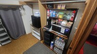 Property Id: 2219562 "This Lovely Spacious Space" is 650sq.ft.... It features 2 fully furnished bedrooms, 1 bedroom with a Queen size bed, and one bedroom features a King size bed. Each bedroom has a microwave, mini fridge, coffee maker, 50" smart TV, work desk, portable fan and a portable heater...... The 2 bedrooms share one full bathroom, that is centrally located between both bedrooms..... The laundry room is located on the main level and features a newer washer and dryer that guest can access during their stay..... You will also have access to the outside backyard patio.....