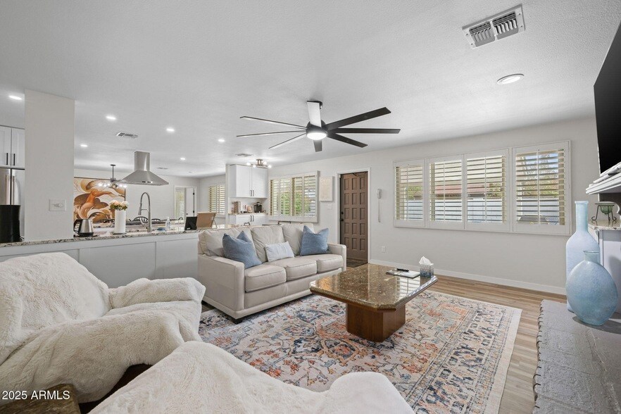 Welcome to this UPDATED 4-bedroom, 2-bathroom house, blending Style, Comfort, & practicality w/ OWNED SOLAR!! Enjoy modern upgrades to include a Gourmet Kitchen -High End GE Cafe Appliances & 36'' 6 Burner Stove, Granite Counters w/ Tasteful Cabinets! New flooring, LED recessed lighting, & Newer Interior & Ext. paint. Essential Updates (2022) water heater & Roof, Enhanced ductwork for optimal heating and cooling. (2024) Security is seamless with an ADT security system! The primary bedroom is your private oasis, with direct access to a refreshing Pebble Tech pool. The insulated 2-car garage offers ample protection for your vehicles, & the backyard is an entertainer's delight w/ misting system & heat-reducing deck. Washer and Dryer Included! Pest, Pool Service Included. Misc Upgrades to List: Wood Shutter Window Coverings, Dimming Switches, Upgraded electrical outlets, Newer Filter & Pool Pump, Automatic Sprinkler System, Misting System, Built In BBQ, Updated Electrical Panel (2022). Refrigerator, Local Conveniences includes, 4 miles to ASU, Easy Access to Major Highways 101, 202, I10 & I60. Banner Medical Center is also a few miles away. Many Restaurants & Entertainment, plus Spring Training fields for your Baseball Enthusiasts! Note: Furnishing May be included or can be removed! at another rate, please inquire 3/6/12Lease available for Furnished options