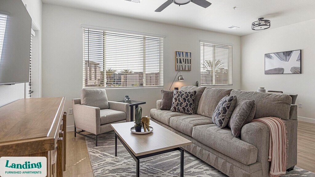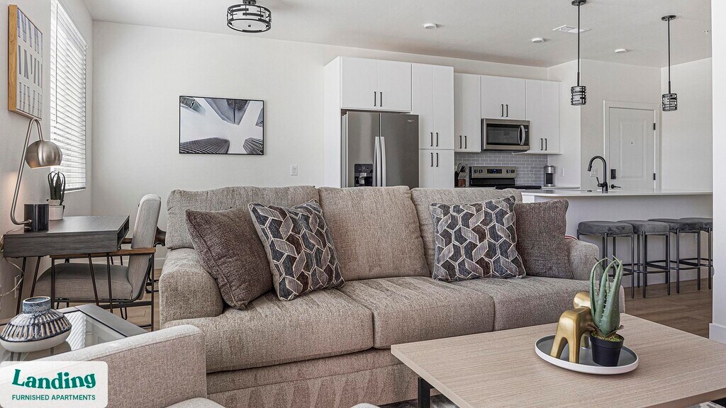 Landing offers flexible lease terms from weeks to months. Please always visit our website or contact us for the latest pricing & availability. Stay longer, save more: 6-Month Minimum base rent: starts at $2085/mo 12-Month Minimum base rent: starts at $1635/mo Landing offers flexible leases across a network of over 35,000 fully-furnished apartments throughout 375+ cities so you can rent on your terms, practically anywhere, and avoid the hassle of paying deposits or application fees. Visit to learn about all the benefits of a Landing membership, see our competitive up-to-date pricing, explore available apartments, take virtual tours, and make reservations online without jumping through traditional rental hoops. Landing's apartments at Solace Casa Grande Crossings are designed for comfortable, easy living, with the ability to stay as long as you like. Experience living with Landing Every apartment is outfitted with all the modern essentials including: custom-designed furnishings, a fully-equipped kitchen with deluxe stainless steel appliances, a gourmet coffee maker, premium linens, Smart TVs, and incredibly fast, reliable internet for working from home. When you live with Landing, you'll enjoy a hassle-free experience with the added benefit of 24/7 access to our dedicated member experience team. Some of the nitty-gritty: a background check and proof of income are required; we're completely smoke-free; bundled utility packages and pricing vary based on length of stay; pet-friendly options available; listed price reflects a 12-month minimum stay.