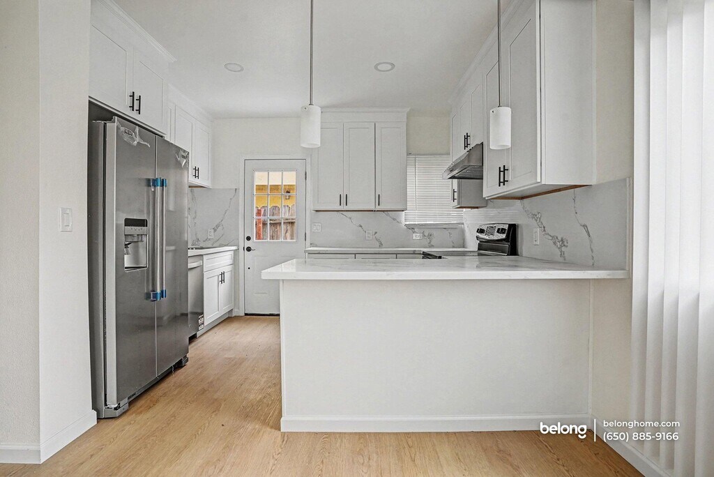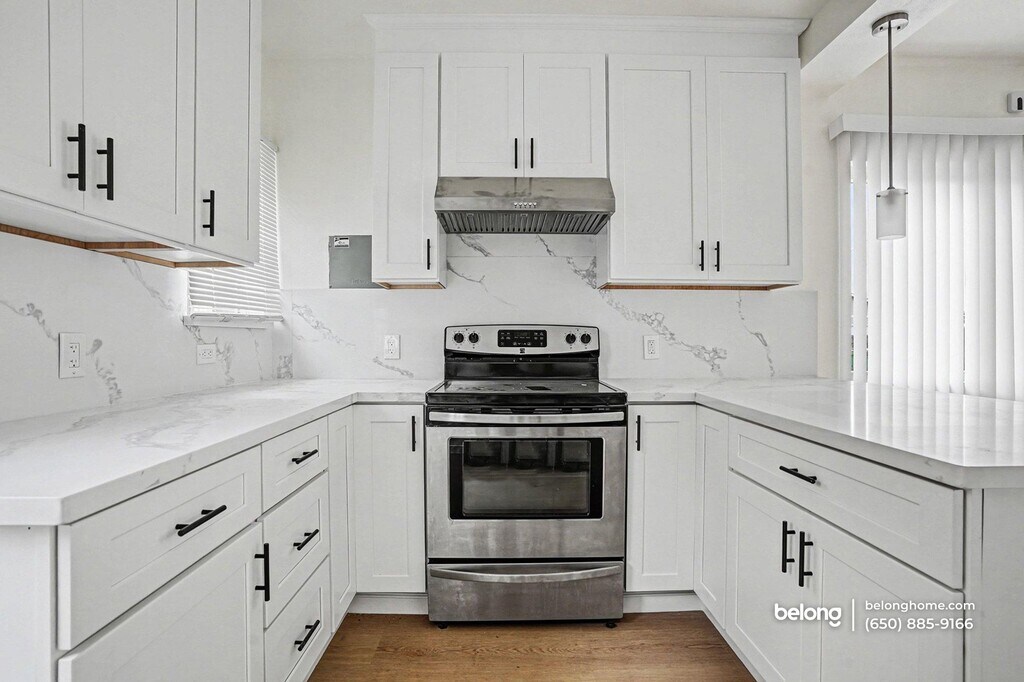 This modern, fully rebuilt 2-bedroom, 2-bath home offers a clean, contemporary environment shaped by thoughtful upgrades and brand-new systems throughout. With a focus on efficiency, comfort, and simplicity, the space feels intentional from end to end, supporting a streamlined day-to-day routine. Its main living area connects seamlessly to the kitchen and dining space. New flooring runs throughout the unit, paired with recessed lighting and a neutral palette that keeps the focus on proportion and flow. The kitchen is entirely new and finished with stainless steel appliances, including an electric range, oven, refrigerator, dishwasher, and hood, all set within crisp cabinetry and clean-lined surfaces suited for everyday use. Both bedrooms are well defined and supported by two fully renovated bathrooms, each completed as part of the home’s full remodel. Every room is equipped with its own mini-split system, allowing individual control of heating and cooling based on preference, while updated plumbing and electrical systems reinforce the home’s like-new condition. All doors and windows have also been replaced, contributing to a cohesive, refreshed interior. Set within a quiet neighborhood, the home offers convenient access to Highways 92, 880, and 580, with Cal State East Bay, BART, and nearby supermarkets just minutes away. One pet is welcome. *Water and sewage are billed at a flat $150 monthly fee, paid directly to the homeowner. *Our homes come as-is with all essentials in working order. Want upgrades? Request it through the Belong app, and our trusted pros will take care of the rest!