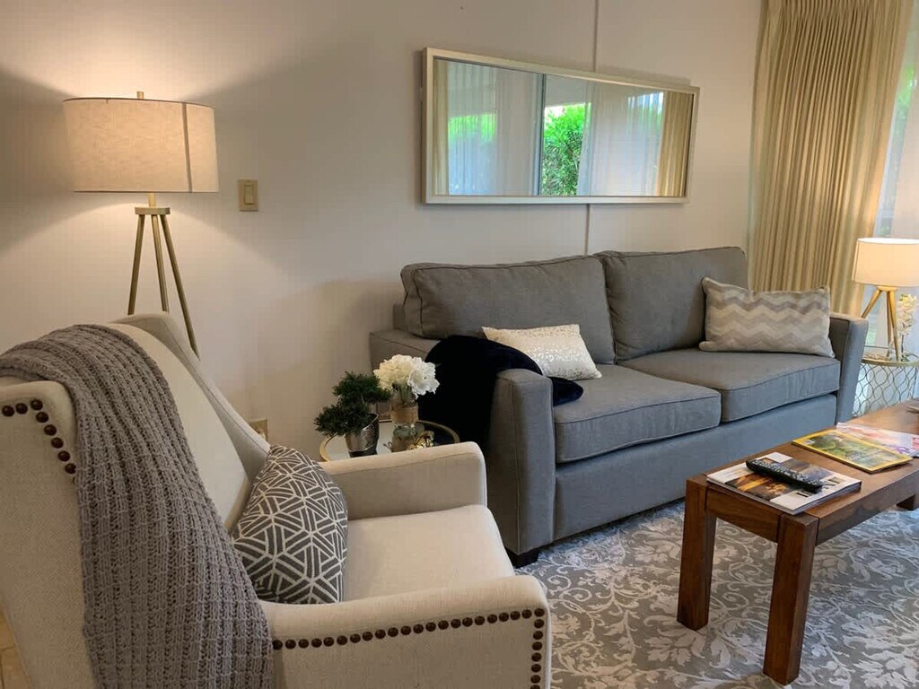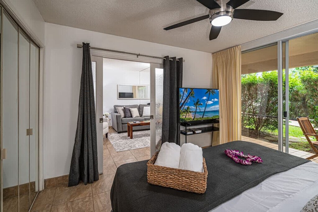 Feel at home in this newly decorated ground-floor retreat, offering unparalleled convenience just steps from Maui’s best beaches. This stylish, modern condo is designed for ultimate relaxation and features a spacious living area, a fully stocked kitchen with top-tier appliances, a king-size bed, a luxury memory foam sofa bed, a 65" Smart TV, Netflix, and high-speed Wi-Fi. Enjoy resort-style amenities including a pool, hot tub, BBQ grills, and lush gardens. A complimentary Pack N Play is available. Perfect for beach lovers, remote workers, and families looking for a stress-free vacation, this apartment is steps away from Kamaole Beach, dining, and shops. Smoking is prohibited inside and outside within 100 feet, even on the balcony, and will incur a $500 minimum fee. Parties are not allowed. Pets are not allowed on the premises, and if a pet is found at any time during your stay, a minimum penalty fee of $500 will be applied. Please avoid any spills on the rug and sofa and any permanent stains on the white towels. Do not leave the unit with the AC on anytime you leave the property for the beach or at check-out, as excessive usage may incur an extra fee. Remove shoes in the unit. There should be no loud noise in the unit during your stay, especially during the quiet hours from 10 pm to 8 am, and complaints from neighbors or other guests may result in being asked to leave. Includes a dedicated workspace for remote work. [SI]