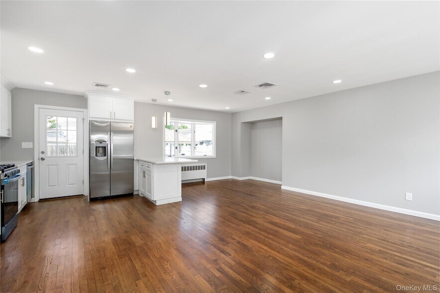 This fully renovated 3-bedroom, 2-bath ranch is situated on an oversized lot and offers modern comfort with high-end finishes throughout. Located in Plainedge Schools and close to shopping. From the moment you enter, you'll notice the attention to detail and quality workmanship in every corner of the home. The kitchen features brand-new white shaker cabinets, sleek quartz countertops, and stainless steel appliances, creating a stylish and functional cooking space. Both bathrooms have been beautifully updated with contemporary tile and fixtures. The home also includes central air conditioning, ensuring year-round comfort. A fully finished basement provides additional living space that can be used as a den, office, or guest area. Outside, the detached garage features a large overhang in the front perfect for a shaded patio or entertaining area. With May 15th occupancy available, this move-in ready home is ideal for anyone looking for space, style, and convenience. Tenants are responsible for utilities. Don't miss your chance to enjoy a like-new home with all the upgrades.