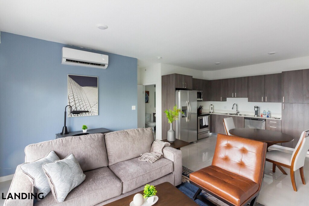 Landing is a top-rated, fully furnished apartment network with thousands of homes across 250+ U.S. cities. With premium amenities, a mobile app to manage your stay, and 24/7 support. Our apartments have everything you need for monthly and longer stays.: 6-Month Minimum base rent: starts at $3350/mo 12-Month Minimum base rent: starts at $2952/mo Landing's apartments at Modern Towers are designed for comfortable, easy living, with the ability to stay as long as you like. All Landing apartments include: - Fast Wi-Fi - Stylish furnishings - Fully-stocked bathroom - Smart TVs - Comfortable bed - Professionally cleaned - Guest support Stay longer for cheaper! The longer you stay, the bigger your discount. Price advertised is for a 12-month stay, including all utilities and fees, and may vary based on availability. We manage multiple units at this property. While all feature a similar style and furnishings, the layout and specific design elements may vary slightly from the photos provided. Some of the nitty-gritty: a background check and proof of income are required; we're completely smoke-free; pet-friendly options are available; parking is subject to availability.