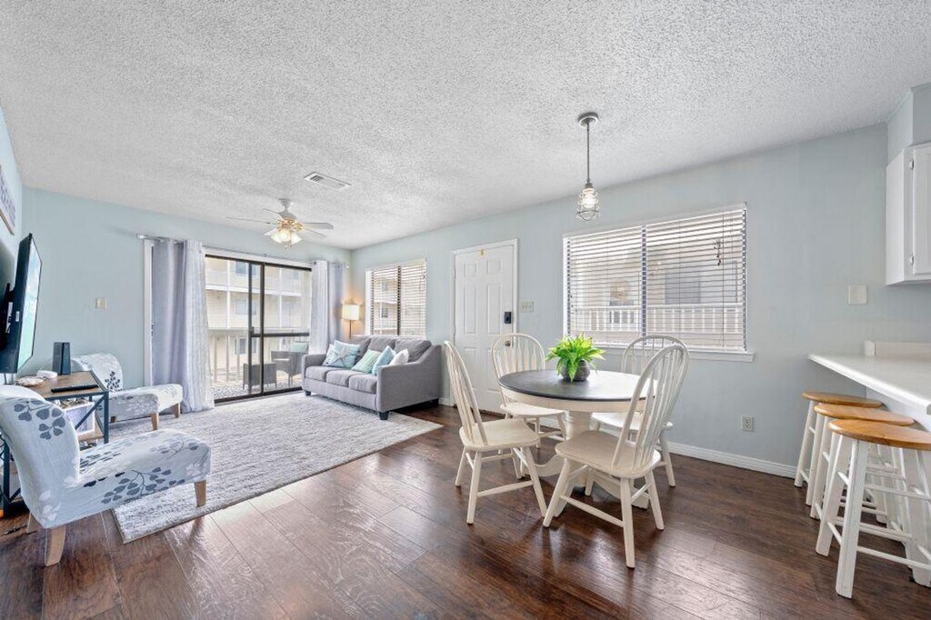 Step into paradise and feel at home in this charming condo overlooking the water at Wolf Bay Villas in beautiful Orange Beach. With easy ground-level access, this condo is perfect for the perfect Orange Beach getaway. Inside, you’ll find a bright and open living space designed for relaxation and connection. The fully equipped kitchen has everything you need to whip up family favorites, while the cozy living room with plush seating and a smart TV invites you to kick back after a fun day in the sun. Enjoy your morning coffee or evening cocktail on the private balcony as you take in the peaceful views. Thoughtful touches like air conditioning and a washer and dryer complete this apartment. Parking is available with one marked spot and one non-marked spot. Take a short stroll to explore the area’s best beaches, shops and local dining favorites. Local attractions include The Wharf, Hugh S. Branyon Backcountry Trail, Gulf State Park, Perdido Pass and Little Lagoon. For same-day late check-ins, you need to get approval before booking. NO SMOKING in the apartment as well as the patio. Any violation of the smoking policy will incur a $250 fine plus the cleaning costs necessary to remove smoke odors from the apartment and linens. Quiet hours are observed from 10 pm to 8 am. Violators will be charged a $200 fine. The condominium association has a strict "No Pets" policy that applies to emotional support animals as they are not covered by ADA. Only ADA-compliant service dogs are allowed according to Federal Law. No parties or events are allowed, and violators will be charged a $500 fine. For March 1st to May 1st, the minimum age requirement for check-in is 25 years old. For your safety and protection, some properties have cameras installed outside. Surveillance cameras are not inside any of our properties. Guests must be at least 23 years of age to make a reservation and provide a state identification card or driver's license copy upon booking. [SI]