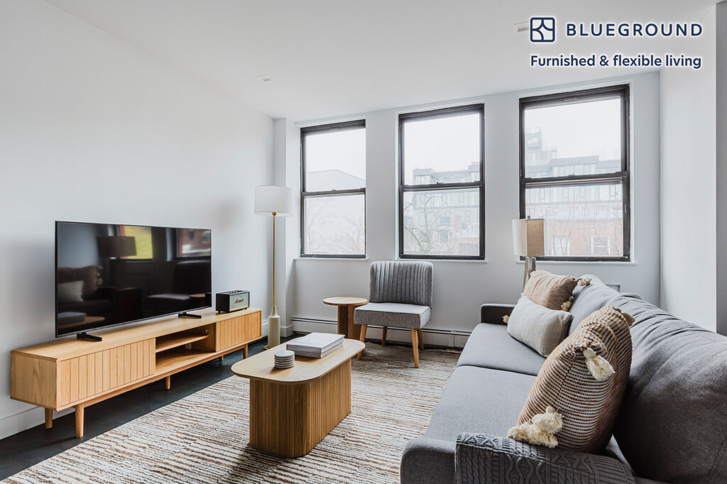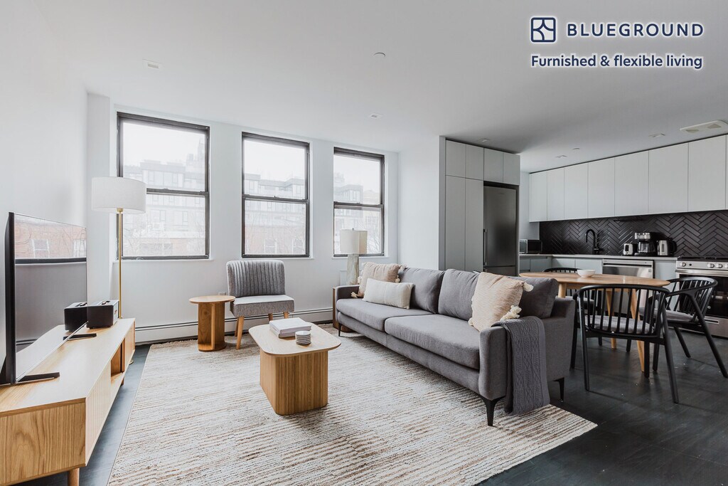 Feel at home wherever you choose to live with Blueground. You’ll love this beautiful Vinegar Hill furnished two bedroom apartment with its modern decor, fully equipped kitchen, and exquisite living room. Ideally located, you’re close to all the best that New York has to offer! (ID #NYC1667) The advertised rate of $6,654/month is the lowest available price, based on a 11 month(s) and 29 day(s) stay with a move-in date of April 7, 2026. Rates vary depending on the duration of stay, season, and other parameters. For exact pricing and additional pricing components, please visit our website and enter your desired move-in and move-out dates. The rate is applicable when billed upfront; it can be higher if billed in multiple payments. Brokers are welcome to reach out. Were you looking for an unfurnished lease? Try Blueground instead and upgrade from unfurnished to furnished living: - Furnished at rates comparable to unfurnished - No setup or furniture costs - save thousands - Move-in ready - save time, just bring your suitcase Designed with you in mind As with any Blueground apartment, you’ll find a thoughtfully designed space complete with beautiful furniture and a fully equipped kitchen in this two bedroom property. And, thanks to our superior quality mattresses, fully stocked linens, and towels, you can relax knowing you’ll always feel comfortably at home. When you’re ready for some fun, you can take in the New York vibes or bring the entertainment to you with the premium wireless speaker or smart TV. This apartment also offers in-apartment laundry. Sleeping arrangements Queen Bed, 63in/160cm Queen Bed, 63in/160cm Amenities Building amenities unique to this two bedroom apartment include an on-site: - Dryer - Elevator - Washing machine Arrival and ongoing support The entire apartment is yours to enjoy! Throughout your stay, you’ll have access to our Client Experience team through the Blueground App. You can schedule additional cleanings, submit maintenance requests, and view our neighborhood recommendations with just a few taps. We’ll share all details upon confirmation of your stay. Other things to note Building amenities may have an extra cost. This Blueground apartment has flexible lease options, allowing you to book it for one month, a year, or more. Brokes CYOF. We take great pride in ensuring every photo displayed is shot in our own units with our actual furnishings. That said, we regularly refresh our decor and furniture arrangement, which may differ from what’s pictured. [SI]