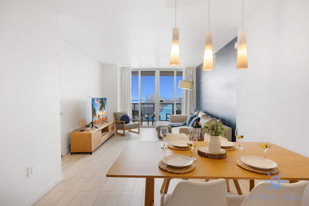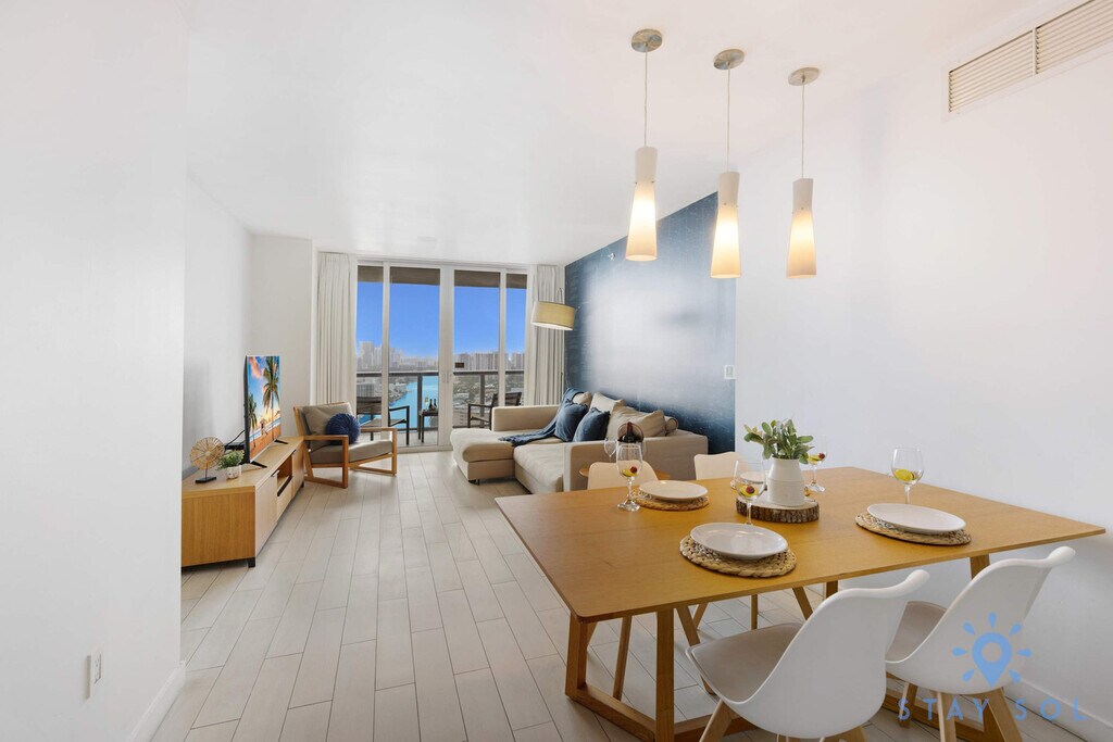 Experience luxury at this Beachwalk Resort Upper Apartment, a pristine 1-bedroom condo facing Hallandale Beach. Only minutes from Aventura Mall and Sunny Isles Beach, it boasts breathtaking views of the Atlantic Ocean, Intracoastal, and Downtown skyline. This elegant space includes a full kitchen, a private balcony, and a washer and dryer for your convenience. Enjoy the Bay View Pool, Sun Deck, and Modern Fitness Center as part of the top-notch amenities. Discover the Beachwalk Resort, situated at the intersection of Hallandale Beach Boulevard and the Intracoastal Waterway, conveniently nestled between Miami Beach and Fort Lauderdale. Indulge in the allure of South Florida's beautiful beaches with resort-style amenities, including a pool and gym. This unit features a south-facing balcony with stunning views of the Intracoastal Waterway and the ocean. Just a block from the beach, it offers proximity to vibrant nightlife, dining, and shopping. With one king-size bed, a private bathroom, and TV, it accommodates 2 guests. Enjoy a fully equipped kitchen, beach access, and free shuttle service. Beachwalk Resort imposes additional mandatory fees that are not included in the nightly rate. These fees are collected separately at check-in and are required to complete your reservation with the property. Resort Fee: Stays of 1 to 7 nights: $30 per day plus taxes, 8 to 14 nights: $25 per day plus taxes, 15 to 29 nights: $20 per day plus taxes, 30 nights or more: $300 per month and $10 for each additional day plus taxes. Valet Parking (Optional): 1 to 7 days: $28 per day per vehicle plus taxes, 8 to 10 days: $25 per day per vehicle plus taxes, 11 to 19 days: $250 per stay per vehicle plus taxes, 20 to 30 days: $295 per stay per vehicle plus taxes. Package Handling: $5 per package plus applicable taxes. Packages may be collected from the package room between 9 AM and 5 PM. Explore the vibrant surroundings of Beachwalk Resort! Walk to Hollywood Beach boardwalk and Blue Wave-designated beaches. Indulge in Gulfstream Park's dining, horse races, and casino, just five minutes away. Visit the iconic Hard Rock Guitar Hotel and Casino to the west or attend events at Hard Rock Stadium. Head south to Aventura Mall or venture to lively South Beach for nightlife. Northward, discover Fort Lauderdale's shopping and dining. Conveniently located minutes from Fort Lauderdale Airport. Nearby 24-hour Walmart and Publix Supermarket, with Instacart for hassle-free grocery delivery to your apartment. Due to ongoing improvements in the building, the gym will remain closed until further notice. Smoking inside or outdoors on the premises is prohibited. Any sign of smoking will lead to eviction with no refund and up to $500 in cleaning charges. [SI]