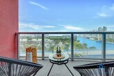 Feel at home in this spectacular apartment at Beachwalk Resort, designed by Pininfarina (Ferrari). This spacious apartment features a private balcony with stunning views. This apartment offers resort-style amenities, including home comforts ideal for families or friends traveling together. It features a kitchenette with a mini fridge, microwave, coffee maker, electric kettle, and toaster, perfect for preparing light meals and snacks. Wireless internet is included, along with a TV. Enjoy access to the pool, gym, restaurant, and beach with a free shuttle service. Package handling is available for $5 per package plus applicable taxes, with packages collected from the package room between 9 AM and 5 PM. Valet parking is available, with prices ranging from $28 per day per vehicle plus taxes for 1 to 7 days, to $295 per stay per vehicle plus taxes for 20 to 30 days. A Pack 'N Play Crib is available upon request. Located at the corner of Hallandale Beach Boulevard and the Intracoastal Waterway, this apartment is equidistant from Miami Beach to the south and Fort Lauderdale to the north. It's just one easy block to the beach and minutes from nightlife, dining, shopping, and recreation. Just beyond the resort, you'll find the Hollywood Beach boardwalk and miles of Blue Wave-designated beaches. The resort is surrounded by restaurants and the world-famous Gulfstream Park. To the west, you can visit the Hard Rock Guitar Hotel & Casino, and to the south, the Aventura Mall. To the north, enjoy more shopping and restaurants in Fort Lauderdale. Fort Lauderdale Airport is minutes away. For groceries, a 24-hour Walmart is next door, and a Publix Supermarket is a two-minute drive away. A resort fee will be charged at check-in. Swimming is at your own risk, with no lifeguard on duty, and children must be supervised by an adult at all times. Please keep all doors closed and the air conditioning on at all times to prevent condensation and property damage. Quiet hours are from 10:00 PM to 07:00 AM. A $500 fine will be applied for any smoking violation. [SI]