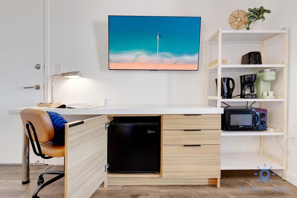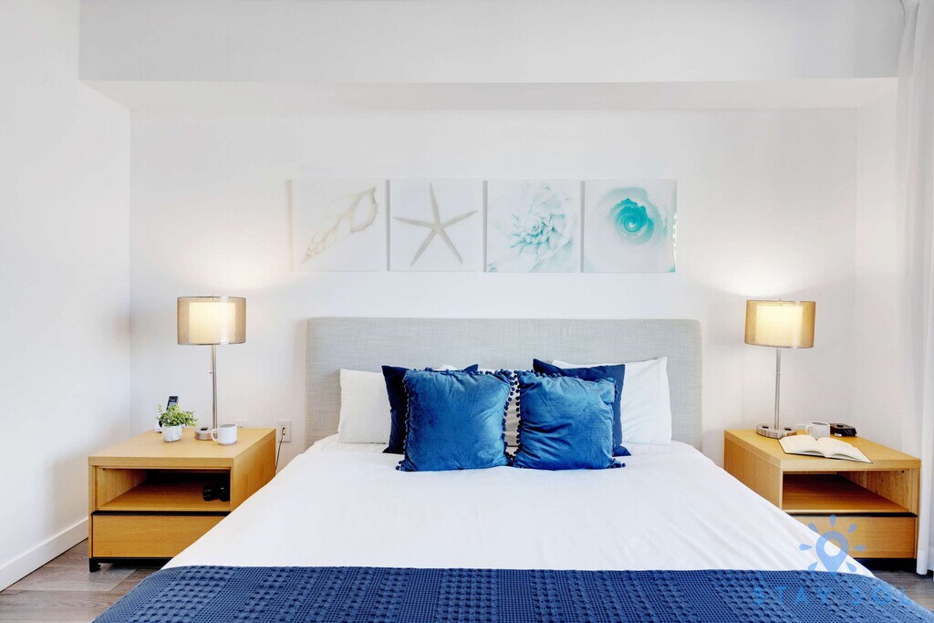 Experience the spectacular views from this Upper Apartment at Beachwalk Resort, designed by Pininfarina. This spacious 2-bedroom apartment features 1 full bath, a king-size bed in the master room, and 2 double beds, comfortably accommodating up to 6 guests. Enjoy the balcony with stunning views of the Atlantic Ocean, Intracoastal, and Downtown skyline. Located at the Beachwalk Resort, this apartment offers resort-style amenities including a pool, fitness center, and restaurant. Just one block from the beach, it provides easy access to South Florida's vibrant nightlife, dining, shopping, and recreation. Wireless internet is included for your convenience. Pack 'N Play Crib is available upon request. Valet parking is optional with varying rates depending on the length of stay. Resort fees are applicable and collected separately at check-in, with rates adjusted based on the duration of your stay. Package handling is available for $5 per package plus applicable taxes. The neighborhood offers the Hollywood Beach boardwalk and miles of Blue Wave-designated beaches. Nearby attractions include Gulfstream Park, Hard Rock Guitar Hotel & Casino, and Aventura Mall. The property is minutes from Fort Lauderdale Airport, with a 24-hour Walmart and Publix Supermarket nearby for groceries. The gym is currently closed due to ongoing improvements. No smoking is allowed on the premises, indoors or outdoors, with a penalty of up to $500 in cleaning charges for violations. Beachwalk Resort imposes additional mandatory fees not included in the nightly rate, collected separately at check-in. [SI]