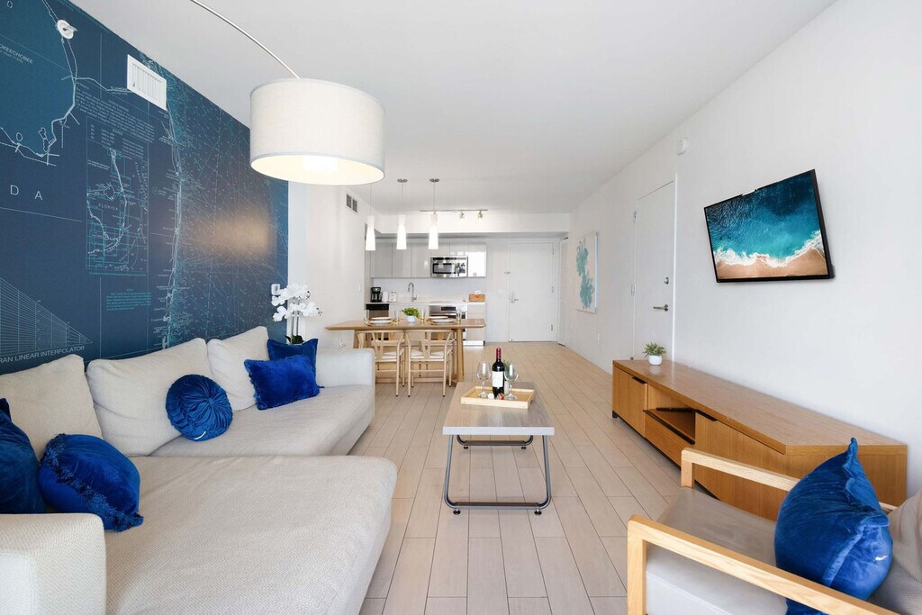 Feel at home in this spectacular apartment at Beachwalk Resort, designed by Pininfarina (Ferrari). This apartment features 1-full bath and a private balcony with stunning views. This gorgeous condo-hotel offers resort-style amenities, including home comforts ideal for families or friends traveling together. Wireless internet is included, along with a TV. You will also have beach access with a free shuttle service to the beach (3 minutes away), a fitness center, and a restaurant. A Pack 'N Play Crib is available upon request. Package handling is available for $5 per package plus applicable taxes, and packages may be collected from the package room between 9 AM and 5 PM. Valet parking is available for 1 to 7 days at $28 per day per vehicle plus taxes, 8 to 10 days at $25 per day per vehicle plus taxes, 11 to 19 days at $250 per stay per vehicle plus taxes, and 20 to 30 days at $295 per stay per vehicle plus taxes. Located at the corner of Hallandale Beach Boulevard and the Intracoastal Waterway, this apartment is equidistant from Miami Beach to the south and Ft. Lauderdale to the north. It is one easy block to the beach and minutes from nightlife, dining, shopping, and recreation. Just beyond the resort, you'll find the Hollywood Beach boardwalk and miles of Blue Wave-designated beaches. The resort is surrounded by restaurants and the world-famous Gulfstream Park. To the west, you can visit the famous colossal Hard Rock Guitar Hotel & Casino, and to the south, the renowned Aventura Mall. To the north, you can enjoy more shopping and restaurants in Fort Lauderdale. The apartment is minutes from Fort Lauderdale Airport. For groceries, you will find a 24-hour Walmart right next door and a Publix Supermarket two minutes' drive away. Please keep all doors closed and the air conditioning on at all times to help prevent condensation and property damage. Quiet hours are from 10:00 PM to 07:00 AM. A $500 fine will be applied for any smoking violation. [SI]