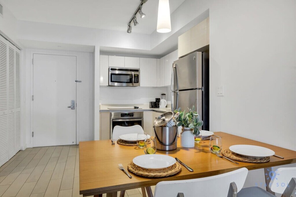 The advertised rate of $2,526/month is the lowest available price, based on a 30 day(s) stay with a move-in date of August 26, 2026. Rates vary depending on the duration of stay, season, and other parameters. For exact pricing and additional pricing components, please visit our website and enter your desired move-in and move-out dates. The rate is applicable when billed upfront; it can be higher if billed in multiple payments. Feel at home in this spectacular apartment at Beachwalk Resort, designed by Pininfarina (Ferrari). This spacious apartment features 1-king-size bed in the master room and 1-sofa in the living room, along with a full bath and a private balcony. Enjoy this gorgeous condo-hotel with resort-style amenities, ideal for families or friends traveling together. Wireless internet is included. You will also find a fitness center and a restaurant. Beach access is available with a free shuttle service to the beach (3 minutes away). A Pack 'N Play Crib is available upon request. Package handling is available for $5 per package plus applicable taxes, and packages may be collected from the package room between 9 AM and 5 PM. Valet parking is available for a fee. This apartment is located at the Beachwalk Resort, at the corner of Hallandale Beach Boulevard and the Intracoastal Waterway, equidistant from Miami Beach to the south and Ft. Lauderdale to the north. It is just one easy block to the beach and minutes from the most fabulous nightlife, dining, shopping, and recreation experiences. Just beyond the resort, you'll find the Hollywood Beach boardwalk and miles of Blue Wave-designated beaches. The resort is surrounded by lots of restaurants and the world-famous Gulfstream Park, where you can dine, enjoy horse races, or try your luck at the casino five minutes away. To the west, you can visit the famous colossal Hard Rock Guitar Hotel & Casino. It is the perfect location to be if you are attending an event at Hard Rock Stadium. To the south, you can continue to the renowned Aventura Mall, or if you feel like going on an adventurous nightlife, you can head to South Beach to party all night. To the north, you can enjoy more shopping and restaurants in the city of Fort Lauderdale. The apartment is minutes from Fort Lauderdale Airport. For groceries, you will find a 24-hour Walmart right next door and a Publix Supermarket two minutes drive. You are also welcome to use Instacart for grocery delivery right to your apartment. Beachwalk Resort imposes additional mandatory fees that are not included in the nightly rate. These fees are collected separately at check-in and are required to complete your reservation with the property. A $500 fine will be applied for any violation of the no-smoking policy. Please keep all doors closed and the air conditioning on at all times to help prevent condensation and property damage. Quiet hours are from 10:00 PM to 07:00 AM. Please maintain low noise levels to ensure a relaxing stay for all guests. Excessive noise or property damage may result in penalties. [SI]
