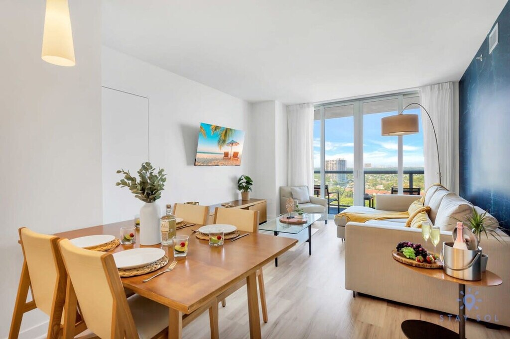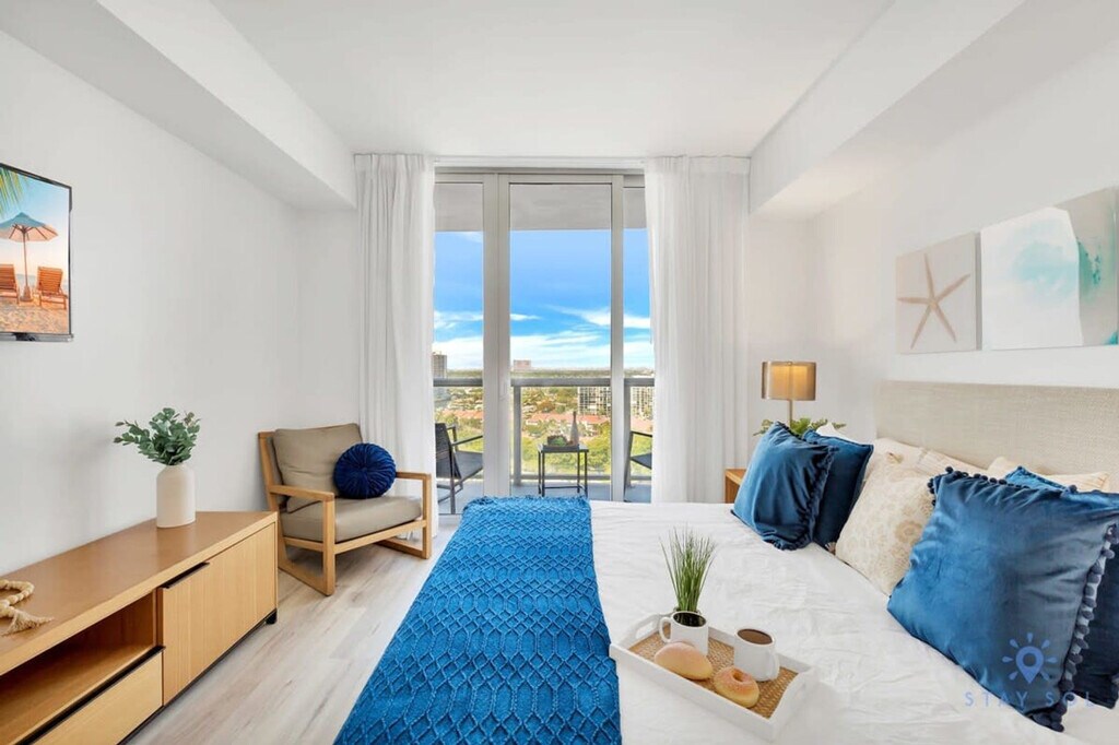 The advertised rate of $2,460/month is the lowest available price, based on a 30 day(s) stay with a move-in date of August 16, 2026. Rates vary depending on the duration of stay, season, and other parameters. For exact pricing and additional pricing components, please visit our website and enter your desired move-in and move-out dates. The rate is applicable when billed upfront; it can be higher if billed in multiple payments. Feel at home in this spectacular apartment at Beachwalk Resort, designed by Pininfarina (Ferrari). This gorgeous condo-hotel offers resort-style amenities, including a pool and gym. The room features a king-size bed and can comfortably accommodate up to 4 guests, with a private bathroom and TV. Wireless internet is included. Valet parking is available for a fee: 1 to 7 days: $28 per day per vehicle, plus taxes, 8 to 10 days: $25 per day per vehicle, plus taxes, 11 to 19 days: $250 per stay per vehicle, plus taxes, and 20 to 30 days: $295 per stay per vehicle, plus taxes. Package handling is available for $5 per package plus applicable taxes. A pack 'N Play crib is available upon request. Located at the corner of Hallandale Beach Boulevard and the Intracoastal Waterway, this apartment is equidistant from Miami Beach to the south and Ft. Lauderdale to the north. It is one block to the beach and minutes from nightlife, dining, shopping, and recreation. The Hollywood Beach boardwalk and Blue Wave-designated beaches are nearby. The apartment is surrounded by restaurants and is close to Gulfstream Park and the Hard Rock Guitar Hotel & Casino. Aventura Mall and the city of Fort Lauderdale are also easily accessible. For groceries, a 24-hour Walmart is next door, and a Publix Supermarket is a two-minute drive away. Instacart is also available for grocery delivery. A $500 fine will be applied for any smoking violation. Please keep all doors closed and the air conditioning on at all times to help prevent condensation and property damage. Quiet hours are from 10:00 PM to 07:00 AM. Please maintain low noise levels. Excessive noise or property damage may result in penalties. [SI]
