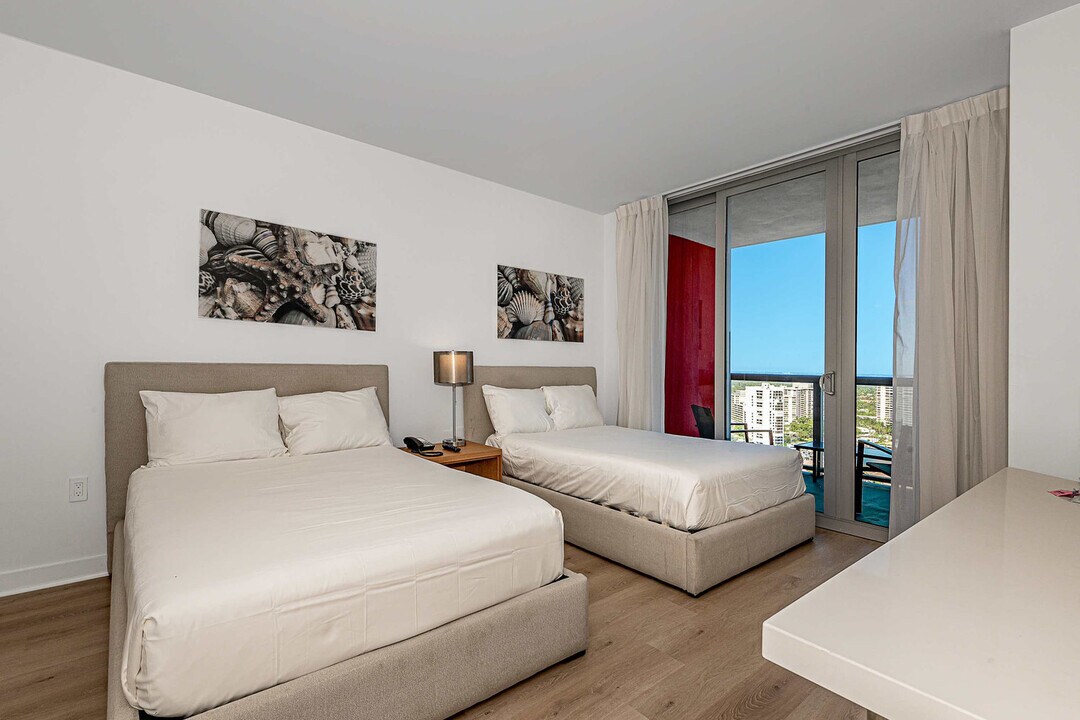 The advertised rate of $2,016/month is the lowest available price, based on a 30 day(s) stay with a move-in date of May 9, 2026. Rates vary depending on the duration of stay, season, and other parameters. For exact pricing and additional pricing components, please visit our website and enter your desired move-in and move-out dates. The rate is applicable when billed upfront; it can be higher if billed in multiple payments. Feel at home in this spectacular apartment at Beachwalk Resort, designed by Pininfarina (Ferrari). This spacious studio features a private balcony with stunning views, one full bath, and a convenient kitchenette with a mini fridge, microwave, coffee maker, electric kettle, and toaster, ideal for preparing light meals and snacks. Wireless internet is included. The studio has two double-size beds and can comfortably accommodate up to 4 guests, with a private bathroom and TV. Enjoy resort-style amenities including a pool and gym. A Pack 'N Play Crib is available upon request. Package handling is available for $5 per package plus applicable taxes, and packages may be collected from the package room between 9 AM and 5 PM. Valet parking is available for a fee: 1 to 7 days: $28 per day per vehicle, plus taxes; 8 to 10 days: $25 per day per vehicle, plus taxes; 11 to 19 days: $250 per stay per vehicle, plus taxes; 20 to 30 days: $295 per stay per vehicle, plus taxes. Located at the corner of Hallandale Beach Boulevard and the Intracoastal Waterway, this apartment is equidistant from Miami Beach to the south and Ft. Lauderdale to the north. It is just one easy block to the beach and minutes from fabulous nightlife, dining, shopping, and recreation. Just beyond the resort, you'll find the Hollywood Beach boardwalk and miles of Blue Wave-designated beaches. The resort is surrounded by lots of restaurants and the world-famous Gulfstream Park, where you can dine, enjoy horse races, or try your luck at the casino five minutes away. To the west, you can visit the famous colossal Hard Rock Guitar Hotel & Casino. To the south, you can continue to the renowned Aventura Mall, or head to South Beach for nightlife. To the north, you can enjoy more shopping and restaurants in the city of Fort Lauderdale. The apartment is minutes from Fort Lauderdale Airport. For groceries, you will find a 24-hour Walmart right next door, a Publix Supermarket two minutes drive away, and you are welcome to use Instacart for grocery delivery. Beachwalk Resort imposes additional mandatory fees that are not included in the nightly rate: Stays of 1 to 7 nights: $30 per day, plus taxes; stays of 8 to 14 nights: $25 per day, plus taxes; stays of 15 to 29 nights: $20 per day, plus taxes; stays of 30 nights or more: $300 per month + $10 for each additional day, plus taxes. A $500 fine will be applied for any smoking violation. Please keep all doors closed and the air conditioning on at all times to help prevent condensation and property damage. Quiet hours are from 10:00 PM to 07:00 AM. Excessive noise or property damage may result in penalties. [SI]