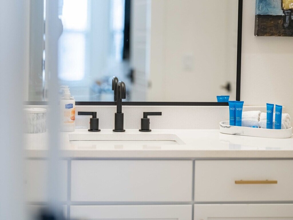 Feel at home in this curated one-bedroom suite located in The Gallery condos, blending modern comfort with Southern charm. Just minutes from Crystal Bridges Museum, boutiques, and bike trails, this apartment offers a stylish décor, a spa-inspired bathroom, and thoughtful touches throughout. Immerse yourself in Bentonville’s art scene with this apartment's spacious lounge featuring two pull-out sofas and a 75? Smart TV for movie nights. The kitchenette includes a mini-fridge, microwave, Keurig, and locally roasted coffee. Enjoy a restful sleep in the queen bed with premium bedding and ample closet space. The spa bathroom boasts a double vanity, walk-in shower, and plush towels. A dedicated workspace and high-speed internet make it remote work-friendly. Well-behaved dogs are welcome with a fee of $75 per dog, with a maximum of two dogs allowed. Unfortunately, no cats or other pets are permitted. Located directly across from Osage Park and Thaden Field, enjoy scenic walking and biking trails with easy access to Bentonville’s extensive trail network. Minutes from Crystal Bridges Museum of American Art, The Momentary, Walmart Museum, and the Museum of Native American History, this apartment is perfect for art enthusiasts. Experience Bentonville’s award-winning culinary scene with local dining options like Onyx Coffee Lab, The Hive, and Tavola Trattoria. Just a short drive to Bentonville City Square for boutique shopping, seasonal festivals, and small-town charm. Free parking is available, and the apartment is just 20 minutes from Northwest Arkansas National Airport (XNA). This apartment offers hassle-free check-in with keyless entry codes sent before arrival. While smoking is prohibited anywhere on the property, odor remediation can easily exceed $1,000 if violated. No parties or events are allowed, and quiet hours are from 8 p.m. to 8 a.m. Children and infants are welcome, but please supervise them at all times. Starter supplies like toilet paper, paper towels, and toiletries are provided, but you may need extras for extended stays. Includes a dedicated workspace and high-speed internet, making it remote work-friendly. A laptop computer is not included.