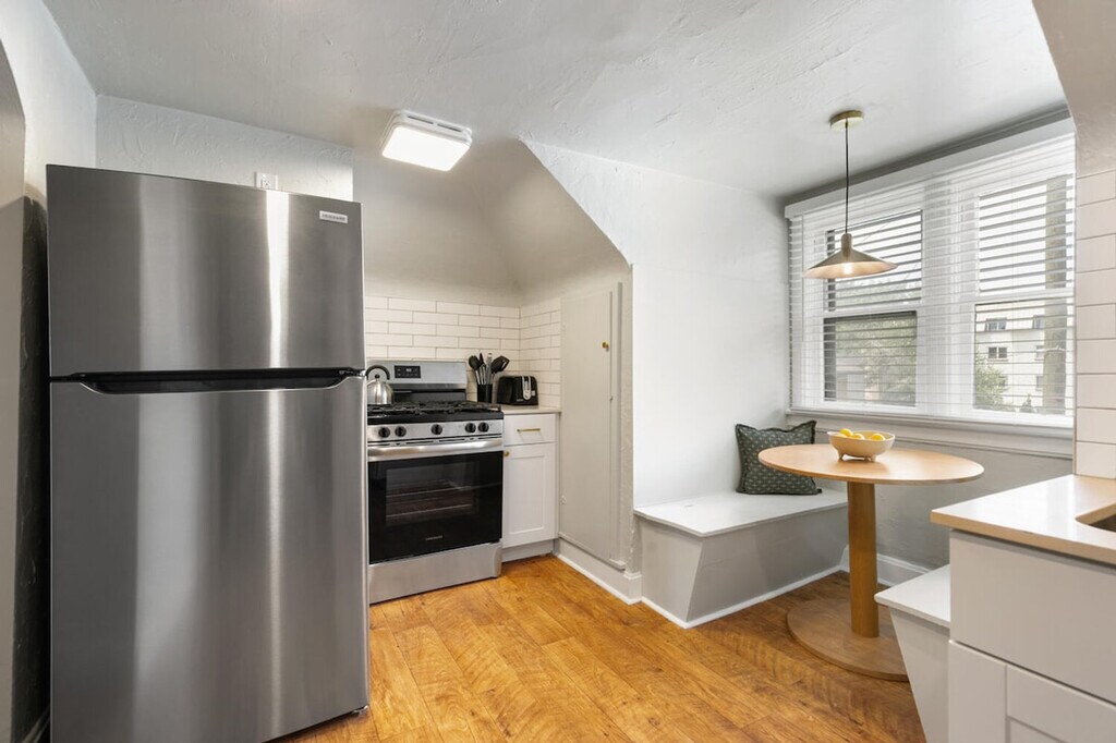 The advertised rate of $3,089/month is the lowest available price, based on a 1 month(s) stay with a move-in date of November 13, 2026. Rates vary depending on the duration of stay, season, and other parameters. For exact pricing and additional pricing components, please visit our website and enter your desired move-in and move-out dates. The rate is applicable when billed upfront; it can be higher if billed in multiple payments. Welcome to your charming 700-sqft 1-bedroom retreat on the top floor of a building on a popular, yet peaceful, tree-lined street in the heart of Congress Park. Feel at home in this bright apartment. This apartment boasts refinished hardwood floors, a renovated kitchen and bath, and a cozy built-in breakfast nook perfect for morning coffee. The stocked kitchen is ready for your culinary adventures. A smart TV is available for your streaming needs. Free communal laundry facilities are available. Pet rent is $90/dog/month. This apartment is located three blocks from Congress Park, five blocks from City Park and six blocks from Cheesman Park and Botanic Gardens. Dozens of cool coffee shops and restaurants are within a five-block walk, with a few on the same block. Congress Park Market for groceries and sandwiches is across the street and Sprouts Farmers Market is eight blocks away. The apartment is eight minutes from Cherry Creek Shopping District, 10 minutes from downtown Denver, RiNo, and LoHi, 30 minutes to Red Rocks, and 1 hour and 30 minutes to ski resorts. Nearby hospitals include St. Joseph, Presbyterian St. Luke’s, and Rose (5 minutes away) and UC Health University of CO and Children’s Hospital CO (15 minutes away). This is a dog-friendly apartment, but there is a strict no-cats policy. Many guests work from home, so please be mindful of the noise coming from your unit due to pets, music, and children as to not cause a disturbance. A warning will be given for any reported noise disturbances, and additional disturbances will result in eviction from the property without a refund. All properties are non-smoking/non-vaping, and violation of this policy will result in damage fees. Check-out time is 10 AM, and failure to check out on time will incur a $50 fee for every additional 30 minutes. The host controls central heat from a single thermostat for the building, and guests control window AC units and ceiling and tower fans. [SI]