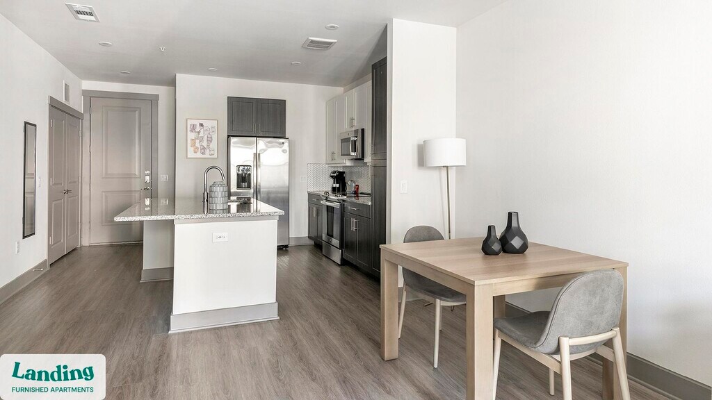 Landing offers flexible lease terms from weeks to months. Please always visit our website or contact us for the latest pricing & availability. Stay longer, save more: 6-Month Minimum base rent: starts at $2194/mo 12-Month Minimum base rent: starts at $2006/mo Landing offers flexible leases across a network of over 35,000 fully-furnished apartments throughout 375+ cities so you can rent on your terms, practically anywhere, and avoid the hassle of paying deposits or application fees. Visit to learn about all the benefits of a Landing membership, see our competitive up-to-date pricing, explore available apartments, take virtual tours, and make reservations online without jumping through traditional rental hoops. Landing's apartments at Bridge at McKinney are designed for comfortable, easy living, with the ability to stay as long as you like. Experience living with Landing Every apartment is outfitted with all the modern essentials including: custom-designed furnishings, a fully-equipped kitchen with deluxe stainless steel appliances, a gourmet coffee maker, premium linens, Smart TVs, and incredibly fast, reliable internet for working from home. When you live with Landing, you'll enjoy a hassle-free experience with the added benefit of 24/7 access to our dedicated member experience team. Some of the nitty-gritty: a background check and proof of income are required; we're completely smoke-free; bundled utility packages and pricing vary based on length of stay; pet-friendly options available; listed price reflects a 12-month minimum stay.