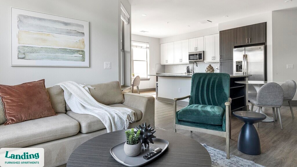 Landing offers flexible lease terms from weeks to months. Please always visit our website or contact us for the latest pricing & availability. Stay longer, save more: 6-Month Minimum base rent: starts at $2833/mo 12-Month Minimum base rent: starts at $2484/mo Landing offers flexible leases across a network of over 35,000 fully-furnished apartments throughout 375+ cities so you can rent on your terms, practically anywhere, and avoid the hassle of paying deposits or application fees. Visit to learn about all the benefits of a Landing membership, see our competitive up-to-date pricing, explore available apartments, take virtual tours, and make reservations online without jumping through traditional rental hoops. Landing's apartments at Bridge at McKinney are designed for comfortable, easy living, with the ability to stay as long as you like. Experience living with Landing Every apartment is outfitted with all the modern essentials including: custom-designed furnishings, a fully-equipped kitchen with deluxe stainless steel appliances, a gourmet coffee maker, premium linens, Smart TVs, and incredibly fast, reliable internet for working from home. When you live with Landing, you'll enjoy a hassle-free experience with the added benefit of 24/7 access to our dedicated member experience team. Some of the nitty-gritty: a background check and proof of income are required; we're completely smoke-free; bundled utility packages and pricing vary based on length of stay; pet-friendly options available; listed price reflects a 12-month minimum stay.