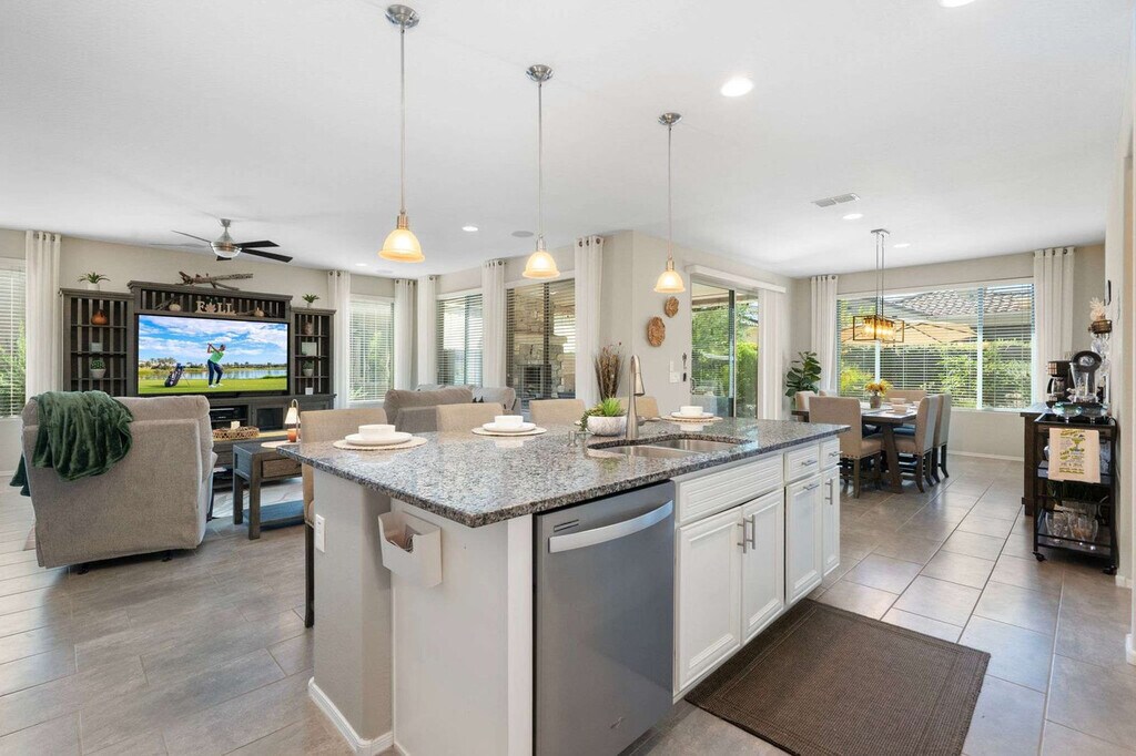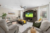 Gorgeous 2-bedroom, 2-bathroom home in Sun City Festival, Buckeye, AZ, perfect for guests 55+ seeking stays of 30 days or more. Feel at home with a fully equipped kitchen, bright living spaces, and a private patio ideal for relaxing or dining outdoors. Enjoy community amenities including the pool, community center, pickleball, tennis, and golf, all set against serene desert views. This 2-bedroom, 2-bathroom home features a den, living room, dining room, and garage access. Both bedrooms have king-size beds, and the den offers a pull-out sofa. The patio is fully equipped with a BBQ, seating, outdoor fireplace, and fountain. Pets are welcome, but the yard is unfenced and desert wildlife may visit, so small animals should not be left unattended. Pets are welcome with approval. Sun City Festival offers an incredible array of amenities, including the daily-fee Copper Golf Course, a 27-hole course managed by Troon Golf, and a spacious clubhouse with a state-of-the-art fitness center. The community center hosts a variety of social and recreational activities. Relax at the resort-style pool or lap pool, catch a game at the softball stadium, enjoy an event at the outdoor amphitheater, or play tennis, pickleball, bocce ball, and basketball. The property is just a 10-mile scenic drive west from AZ SR 303 and Bell Road, placing you close to plenty of dining and entertainment options. Quiet hours are between 10:00 PM and 8:00 AM. No parties or events are allowed, and smoking is prohibited inside the unit with a $500 minimum cleaning charge for violations. A $100 charge will apply to guests bringing more than four guests. Please respect check-in and check-out times, as checking in early or out late without prior approval will result in a fee of $50 per hour. Damaged or missing property may be billed to the guest. Always reach out to your host with questions or concerns. [SI]
