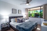 Experience the best of Maui in this stylish 1-bedroom condo located in a top-rated resort, just a short walk from Kamaole Beach. Feel at home with serene lanai views, a luxury king-size bed, and modern amenities that ensure a comfortable stay. This modern retreat features an open-concept living room with cozy seating and a smart TV, a fully stocked kitchen with modern appliances, and a bedroom with a king-size bed and en-suite bath. The living room also offers a comfy sofa bed and an air mattress for additional sleeping arrangements. Enjoy your morning coffee on the private lanai with garden views. Free parking is available just steps away from the condo. Please note that a resort fee of $40 plus tax is payable at check-in. Early check-in and late check-out are available for an additional fee. Situated in a prime location, this condo offers easy access to beaches, restaurants, and shops. Enjoy resort amenities such as a pool, hot tub, gym, and BBQ grills. A short drive will take you to Maui’s best hikes and attractions. This property enforces quiet hours after 10 PM and prohibits smoking both inside and outside within 100 feet, with a minimum fee of $500 for violations. No parties are allowed, and pets are not permitted, with a minimum penalty fee of $500 if a pet is found on the premises. Please avoid spills on the rug and sofa, and do not leave the AC on when leaving the property. Remove shoes inside for better sanitation. Self check-in is available with a smart lock for ultimate flexibility, and check-in instructions will be provided 24 hours prior to arrival. Stay connected with high-speed Wi-Fi and a smart TV, making it easy to work or entertain during your stay. [SI]