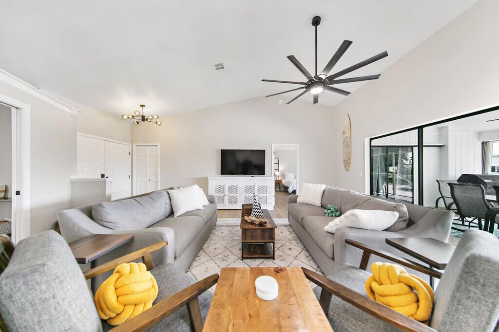 The advertised rate of $5,555/month is the lowest available price, based on a 30 day(s) stay with a move-in date of May 12, 2026. Rates vary depending on the duration of stay, season, and other parameters. For exact pricing and additional pricing components, please visit our website and enter your desired move-in and move-out dates. The rate is applicable when billed upfront; it can be higher if billed in multiple payments. Escape to this peaceful waterfront home in Rotonda West and feel at home in this 3-bedroom, 3-bath retreat. Offering over 2,100 sq. ft. of beautifully designed living space, this home features a dedicated office and plenty of room for families. This serene retreat features a private heated pool, a fully equipped gourmet kitchen with high-end appliances, a coffee maker, an ice maker, a toaster, cookware, and dinnerware. Enjoy the sun-filled open layout with elegant coastal décor, plush seating, a smart TV, and serene canal views. The home also includes a dining table for shared meals, sparkling clean bathrooms with plush towels, a combination of walk-in showers and a shower/tub, and a fenced yard with lush surroundings. A pet fee applies for bringing one small dog (up to 20 lbs). Pool heating is available upon request at least 2 days prior to arrival. Nestled in the peaceful Pebble Beach neighborhood of Rotonda West, this home offers a quiet, upscale setting surrounded by nature, winding canals, and beautifully maintained golf courses. Englewood Beach is 14 minutes away and Stump Pass Beach State Park is 15 minutes away. Enjoy nearby golf courses like Oyster Creek Golf Club, excellent spots for fishing, boating, paddleboarding, and birdwatching, and close proximity to local restaurants, cafés, shops, and grocery stores. Smoking or vaping is not permitted inside the home or within enclosed outdoor areas, and violation of this rule may result in additional cleaning fees. Parties, events, or large gatherings are strictly prohibited, and violations may result in immediate cancellation without refund. Quiet hours are from 10:00 PM to 8:00 AM, and excessive noise during these hours is not permitted. Includes a desk and chair for remote work, along with a queen pull-out sofa for additional sleeping options. Kindly note there is a required security deposit for this unit. The partner will reach out to you to collect it and handle it offline upon your reservation [SI]