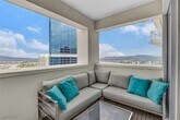 VIEWS of the LAS VEGAS STRIP! A hidden gem in the heart of the Las Vegas Strip. Partially furnished contemporary 2 bedroom unit withbeautiful strip and mountain views from the balcony as well as both bedrooms. Impeccable cherry woodveneer galley kitchen with built-in refrigerator, manufactured wood and tile throughout.