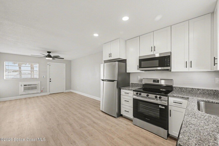 AVAILABLE NOW! This updated 2 bed / 1 bath property is ready for the next tenant. The new kitchen features granite counters, stainless steel appliances, and soft-close white shaker cabinets. Pets are welcome, as there is no carpet and there is a large, partially fenced-in backyard! A new wall-mounted AC system with improved attic insulation should help reduce the electricity bill. A new electric tankless water heater means you will never run out of hot water. Less than a mile from the Spessard Holland Golf Course. Bring your surfboard because this property is on a 3-minute (750 feet) walk to the ocean. Washer/dryer hookups are located in the unit. It is a great opportunity to live the leisurely beachside lifestyle. This property features new Luxyry Vinyl Plank floors. No iron pipes, as this property includes updated sewer and water lines, as well as updated electrical. Water and lawn care are included in the rent.
