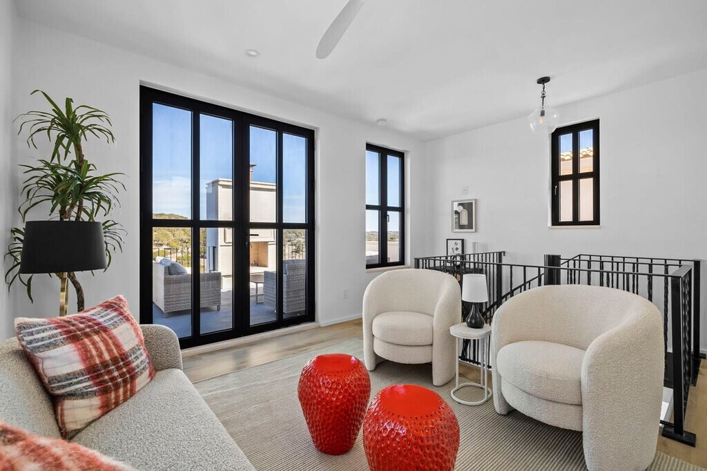 Feel at home in Villa 3 of the Las Luces Village, a 2-bedroom escape offering stunning valley views in Spicewood, Texas. This well-equipped villa features a roomy kitchen and dining area with a gas-burning fireplace, microwave, full refrigerator, stovetop, and dishwasher, ideal for cooking and hosting dinners while enjoying the valley view. The two bedrooms offer unparalleled privacy with en-suite bathrooms. For added comfort and sleeping flexibility, there is a queen sleeper sofa in the second-floor loft and a large couch the size of a twin in the living room, complete with all the necessary sleeping amenities. On the 3rd floor, a seamless transition awaits with indoor and outdoor seating areas, complemented by an outdoor wood-burning fireplace and stunning valley views. Units 1-4 each come with a garage parking spot and a plug compatible with an EV charger. The pool can be heated with a $100 fee per day, and the hot tub will take about an hour to heat up. Two pets are allowed with prior approval and a $100 fee per pet per stay. If you rent multiple units, an additional fee will be added to the other units should the pet(s) enter them as well. Nestled in the scenic Hill Country, Spicewood, Texas, offers a landscape adorned with rolling hills, vineyards, and the peaceful Pedernales River. Las Luces Village is located 2.6 miles from Luck Ranch, 0.5 miles from The Pole Barn at The Vineyard event space, 0.2 miles from Swordstone Disc Golf Club, 0.6 miles from Epic Cellars event space, 0.9 miles from El Gaucho Winery, 3.6 miles from Pedernales Golf Course, 4 miles from 123 Boat Rentals, 4.2 miles from The Lighthouse Restaurant & Lounge, and 9 miles from Rough Hollow Sports Complex. Quiet hours are from 10 pm to 7 am. The pool, grill, and firepit are unavailable for use during quiet hours. Before starting any fires, verify that there is no burn ban in effect in Burnet County, as igniting a fire during a burn ban will incur a $500 fine and the cost of any damages. For health, safety, and maintenance reasons, pets are strictly prohibited from entering the pool, and a $500 fine will be charged if this rule is violated. There are cameras throughout the complex, and there will be fines if you tamper with them. Smoking is not allowed in the premises, and fees may apply. Unauthorized events or parties are not allowed. As this is a rural property out in the Texas Hill Country, it's common to encounter wildlife such as birds, reptiles, deer, and other local fauna. Please note that payments over $1,000 may require a quick verification step. To ensure a smooth check-in experience, you'll be asked to review and sign the house rules and trusted partner terms & conditions via the Guest App Link sent in your reservation confirmation at least 24 hours before your arrival to receive your arrival instructions. [SI]