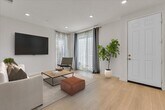Discover an exceptional living opportunity within the highly sought-after Five Point community in Valencia. Built in 2022, this tri-level elevation home epitomizes all the luxuries and sophistication of everyday living. A desirable corner unit with only one shared wall and inviting courtyard entry opens to this light and bright 3-bedroom, 4-bathroom townhome with approximately 2,054 square feet of living space. Main level features an open floor plan great room with living room, dining area, kitchen and powder room. Sun-filled kitchen with views abound is equipped with a large center island, stainless steel appliances, walk-in pantry, Quartz countertops, and white cabinets. Center island overlooks spacious living room area with wider planked wood-like floors plus tons of natural light, providing a tranquil and peaceful living space. The upper level hosts your primary suite plus two bedrooms and a dedicated laundry closet with a side-by-side washer and dryer. Elegant primary suite with plush carpeting, spacious walk-in closet, and primary bathroom with dual vanity sink and oversized walk-in custom tiled shower. Upper third level also features two generously proportioned Jack & Jill bedrooms with an adjoining bathroom. Lower-level features quaint entry with an open concept den, that could be used as a family room, office, gym or guest area, with sliding glass door overlooking the front courtyard. Lower level also features a powder room and is attached to 2-car garage with convenient direct access. Ideal for modern living with eco-friendly amenities like solar panels to help significantly reduce electric bills, Ecobee thermostat, EV charger, water filtration system and tankless water heater, allow for convenience and sustainability. Situated in a prime location, just a few minutes to Confluence Park, residents of FivePoint enjoy access to several resort-style amenities, including multiple pools and spas, a clubhouse, parks, sport courts, hiking/biking trails, community greenhouse, and the Community Center. Brilliantly located near major roads, easy access to freeways, amusement parks (Magic Mountain is just minutes away!), shops, restaurants, award winning schools and more.