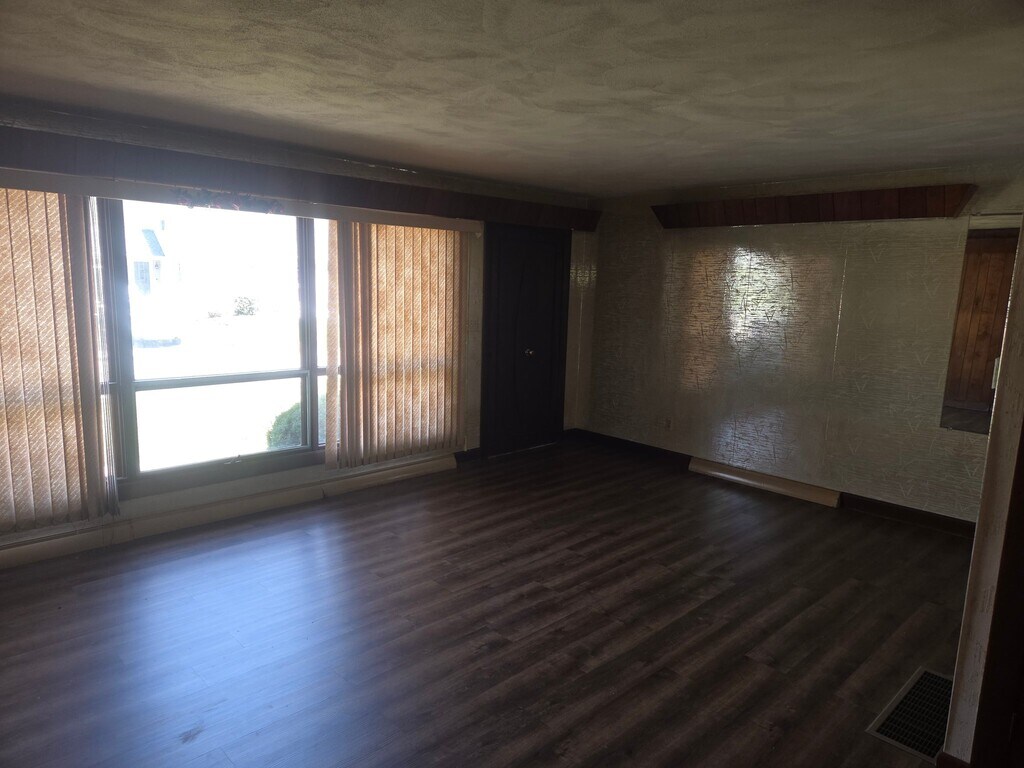Property Id: 2475656 Beautiful 3 bedroom ranch with 1 bathroom that features tile shower/tub, large vanity area, huge mirror, and laundry shoot to laundry area in basement. Each bedroom has own closets and master had double closets. Enclosed entry area with closet. High ceilings in kitchen with sky light. Brand new fridge. Kitchen opens to open floorplan with dining area, large front family room featuring massive picture windows. New hardwood floors through kitchen and family rooms. Second smaller family room with fireplace and glass slider that opens to raised cement patio area. Patio features electric awning. Partially finished basement featuring pool table and bar area. Further down the basement is the washer and dryer. Backyard is huge and fenced in. Large driveway can fit 6 full size vehicles. There is a 2 car garage, I do not plan on renting garage with the house but it can be negotiated if needed. Must see in person and will not last!