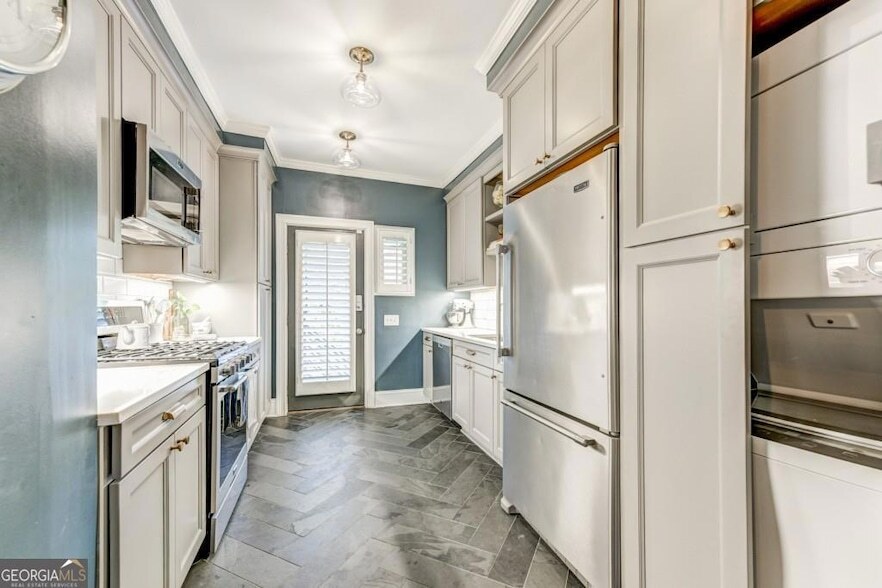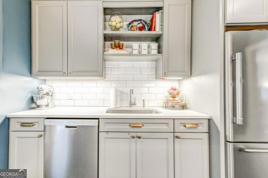 This charming 2BR/1BA condo is located on the TOP FLOOR and is completely updated to today's modern finishes and features, all while being in the heart of Atlanta! Guests can walk along the central courtyard from guest parking to a covered front entrance with secure fob access into the building. As you enter this unit you immediately notice all the gorgeous natural light flowing into this home through plantation blinds providing the ultimate privacy when needed! Note the taller 9-ft ceiling, gleaming hardwood floors throughout the home, modern chevron-laid slate tile floors in the renovated kitchen, plus both crown and upgraded baseboard trim. The galley-style kitchen is AMAZING with gorgeous quartz counters, crisp white subway tile backsplash, gray cabinetry with undercabinet lighting, pantry, stainless steel appliances including the refrigerator, a new 5-burner gas range, dishwasher & built-in microwave. The glass kitchen door allows for maximum light as well as easy access to the fire escape. The open living/dining room has ample space for a seating area and a dining area or use a convertible coffee table to double as dining space in your new abode! The owner's suite has fabulous light from an oversized window, includes a closet and direct access to the shared full bath with marble vanity, basketweave tile floors & a tub/shower combo. The additional bedroom can be used for guests, a home office. A stackable washer/dryer combo is in the kitchen closet. The fire escape doubles as an herb garden off of the kitchen (for those with a green thumb), plus there is an assigned storage room for seasonal items. Great grassy area in community for a picnic under a magnolia tree or tossing the ball around on the weekend! Water/sewer and garbage included ... stop being nickel and dimed to death! Community is across the street from Piedmont Atlanta Hospital. Relax in the community's courtyard area, green space or multiple parks like Ardmore & Tanyard Creek Park nearby, access to the Northside Beltline, Bobby Jones Golf Course, Bitsy Grant Tennis Center, ample grocery stores, restaurants and shopping - all minutes away! Easy access to interstates, Buckhead, Atlantic Station and more downtown. Welcome home!