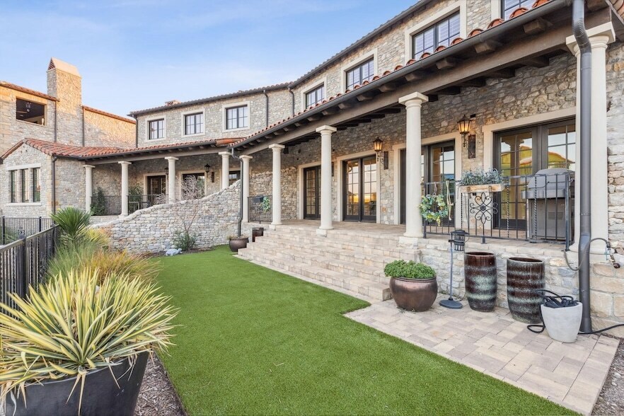 Discover European luxury in this Spanish Catalonian waterfront masterpiece, nestled in distinguished Westlake Entrada. The intimate stone courtyard with fireplace welcomes you. Once inside, enjoy a sunlit living space, pristine wood floors, chic fireplace, and expansive French doors that present beautiful canal views. Open kitchen with sumptuous granite island, Wolf and Subzero appliances and striking designer elements make every meal an event. Venture upstairs to a spacious game room with bar. The primary suite is a haven, complete with a serene tub, and enveloped in rich granite and exquisite finishes. Two private bedrooms have en-suite baths, utilize the adaptive fourth bedroom for work or recreation. Step outside to the impressive canal-front patio and lawn, a front-row seat to nature's tapestry during twilight. Stroll to shops, coffee houses, and walking paths with canal views. Deep dive into unparalleled sophistication, where every day is infused with lock & leave opulence.