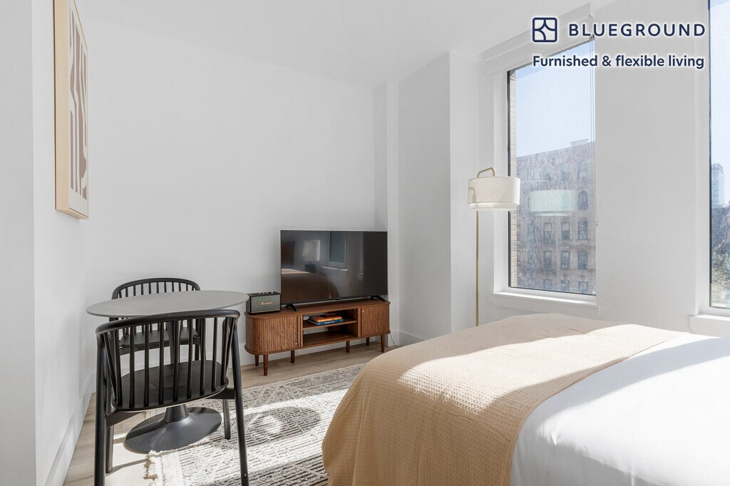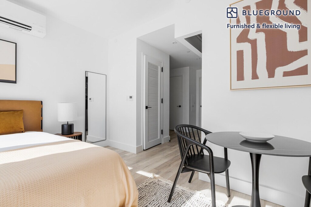 Show up and start living from day one in New York with this cozy studio Blueground apartment. You’ll love coming home to this thoughtfully furnished, beautifully designed, and fully equipped Alphabet City home. (ID #NYC2081) The advertised rate of $4,530/month is the lowest available price, based on a 12 month(s) stay with a move-in date of March 17, 2026. Rates vary depending on the duration of stay, season, and other parameters. For exact pricing and additional pricing components, please visit our website and enter your desired move-in and move-out dates. The rate is applicable when billed upfront; it can be higher if billed in multiple payments. Brokers are welcome to reach out. Were you looking for an unfurnished lease? Try Blueground instead and upgrade from unfurnished to furnished living: - Furnished at rates comparable to unfurnished - No setup or furniture costs - save thousands - Move-in ready - save time, just bring your suitcase Designed with you in mind Gorgeous furniture, fully equipped kitchen, smart TV, and a premium wireless speaker are just a few of the amenities you’ll find inside this studio apartment. Ideally located in New York, you’ll find a lot to love outside as well. When you’re ready to relax, you’ll be happy to discover every Blueground bedroom comes with superior quality mattresses, fully stocked linens, and cozy towels. We handle everything so you can simply show up and start living. This apartment also offers in-apartment laundry. Sleeping arrangements Queen Bed, 63in/160cm Amenities Building amenities unique to this studio apartment include an on-site: - Doorman - Dryer - Elevator - Washing machine - Media room - Pets allowed - Rooftop BBQ Arrival and ongoing support The entire apartment is yours to enjoy! Throughout your stay, you’ll have access to our Client Experience team through the Blueground App. You can schedule additional cleanings, submit maintenance requests, and view our neighborhood recommendations with just a few taps. We’ll share all details upon confirmation of your stay. Other things to note Building amenities may have an extra cost. This Blueground apartment has flexible lease options, allowing you to book it for one month, a year, or more. Pets are welcome, though weight limits and breed restrictions apply and may incur fees. Brokes CYOF. We take great pride in ensuring every photo displayed is shot in our own units with our actual furnishings. That said, we regularly refresh our decor and furniture arrangement, which may differ from what’s pictured. [SI]