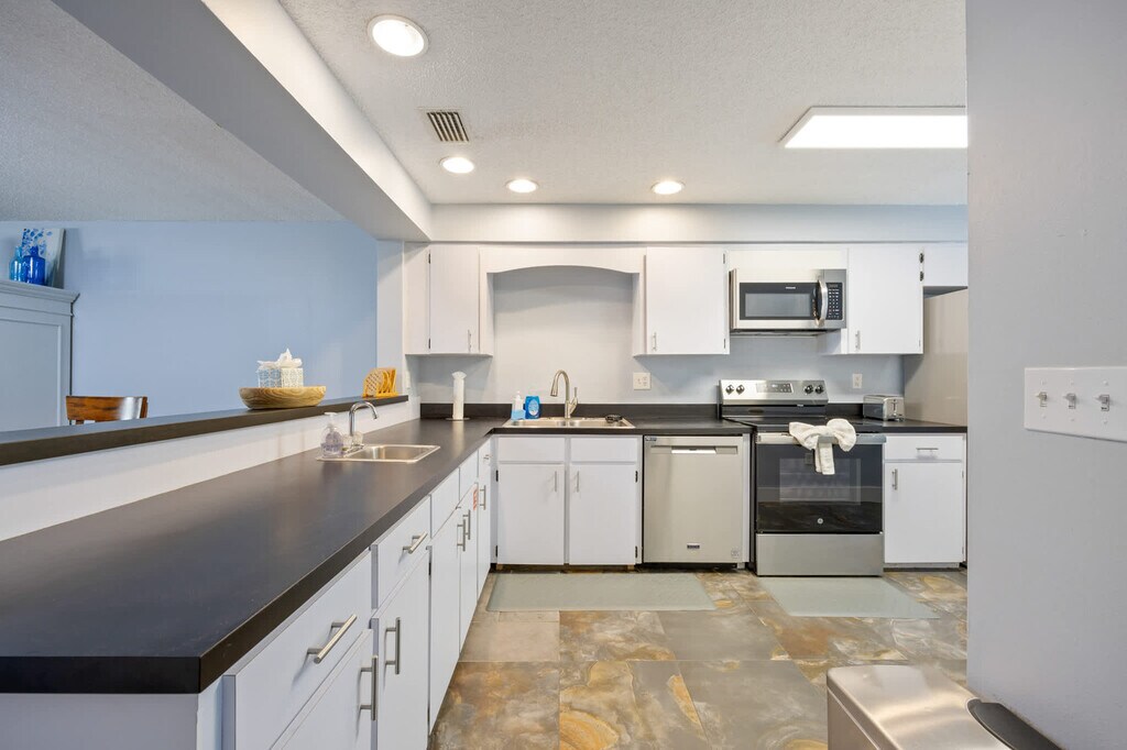 Welcome to your next unforgettable getaway! This tropical 3 bedroom and 3.5 bathroom townhouse has everything you need to make this your ultimate retreat. Just steps aways from the world-famous sand of Cocoa Beach,this newly renovated townhouse features FIVE comfortable beds,a fully stocked kitchen,a spacious living with a large TV,and your own covered private outdoor patio and sitting area to enjoy the ocean breeze. Walk-into the well lit family room furnished with a comfortable sofa and loveseat. This is the perfect place to throw on your favorite show and unwind after a fun day at the beach. The completely remodeled kitchen comes with brand new stainless steel appliances,including a gas stove,coffee makers,and plenty of countertop space! This property comes with a large outdoor patio that is covered with plenty of seating and a TV. When it's time to catch some sleep,enjoy one of the five beds tucked away in the back of the property to give you peace and quiet.