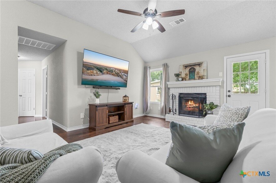 Beautifully updated home within walking distance of local schools. This home features three bedrooms, two bathrooms, and a large den/flexroom with built in cabinets. The living room features a wood burning fireplace with wood look flooring. Enjoy the large backyard with extended patio and shed.